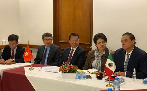 Secretary Dang Xuan Phong and Vietnamese Ambassador in Mexico (the second from the left) at the meeting.