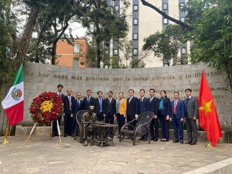 Lao Cai province delegation offers flowers at the statue of President Ho Chi Minh in the capital of Mexico.