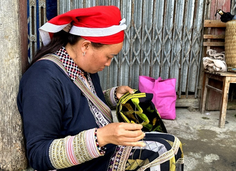 The hand-embroidered brocade of the Red Dao women in Sa Pa is very unique, with its distinctive patterns and vibrant colors. To make a complete costume, each woman must spend a lot of time and effort. The meticulousness in each stage has created the unique features of the Red Dao ethnic costume.