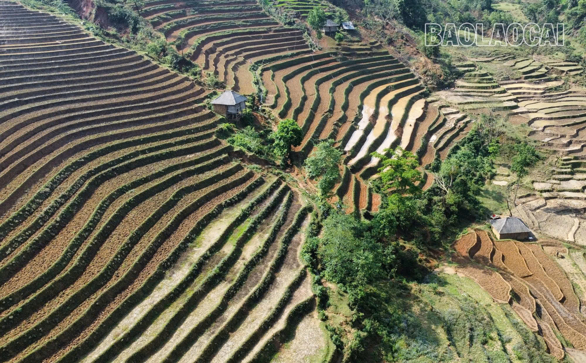 During the pouring water season, the terraced rice fields of Y Ty Commune (Bat Xat District) become truly magical, shimmering and glistening with a breathtaking beauty that captivates the soul.