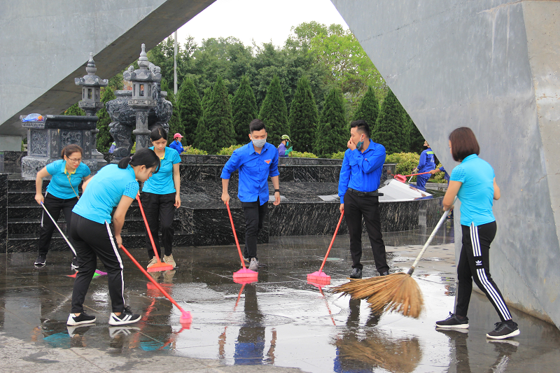 Đoàn thanh niên khối Kinh tế - Tổng hợp dọn vệ sinh Đài tưởng niệm tỉnh