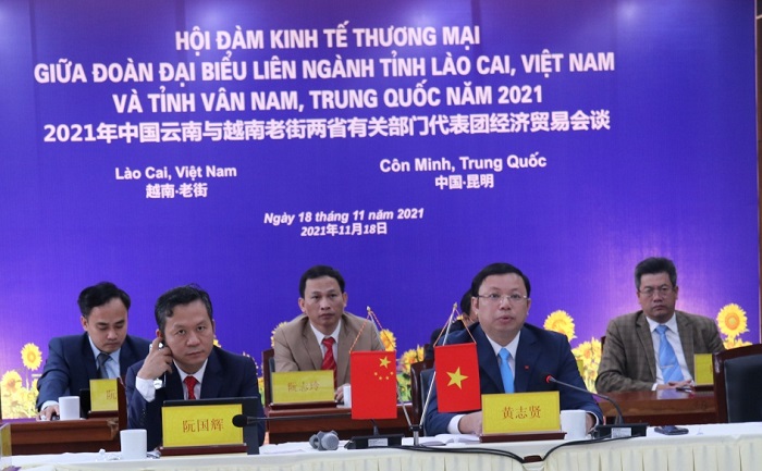 Sáng 18/11/2021, Hội đàm kinh tế thương mại liên ngành giữa tỉnh Lào Cai (Việt Nam) và tỉnh Vân Nam (Trung Quốc) đã diễn ra theo hình thức trực tuyến.