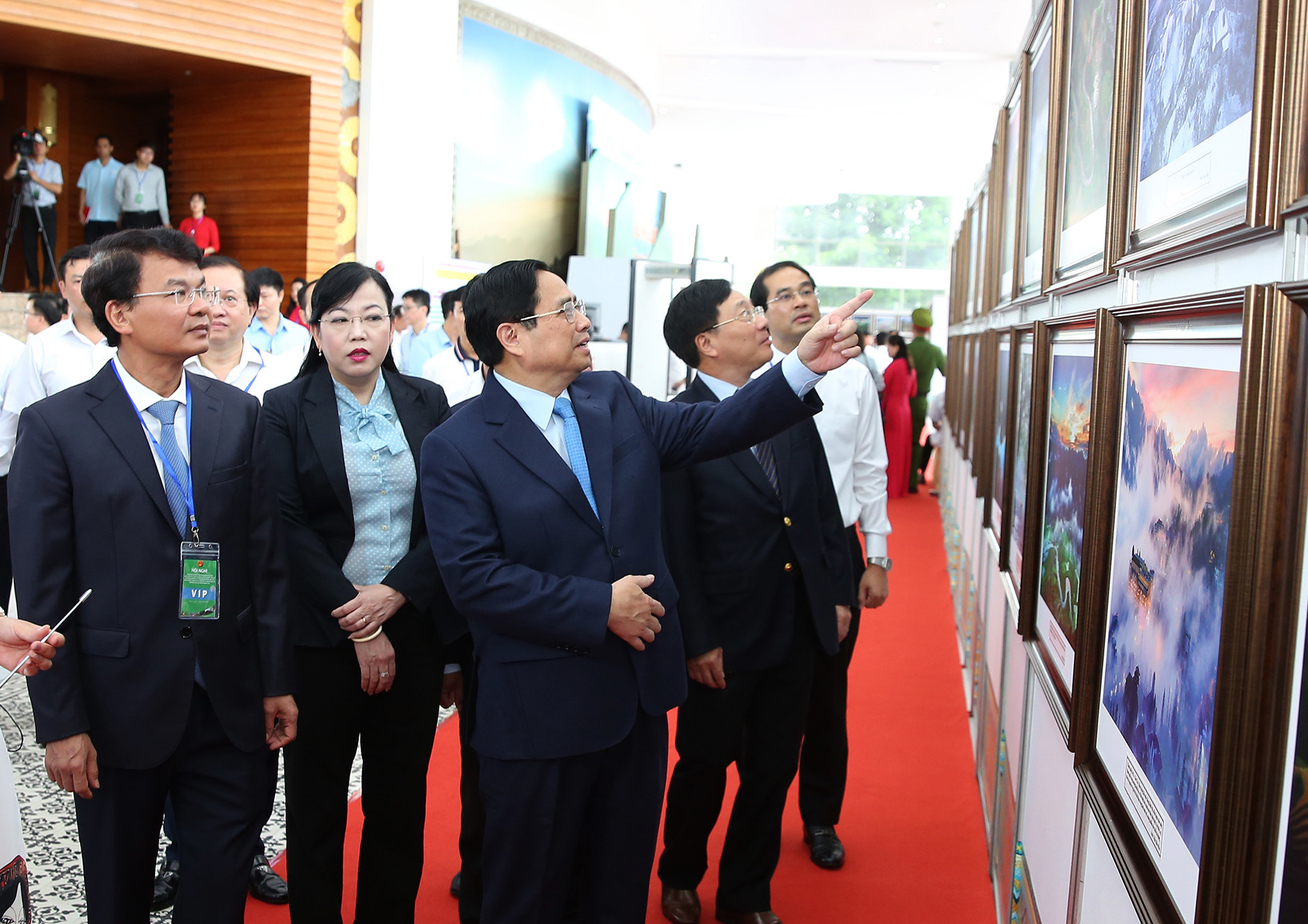 Thủ tướng Chính phủ Phạm Minh Chính thăm triển lãm ảnh bên lề hội nghị.