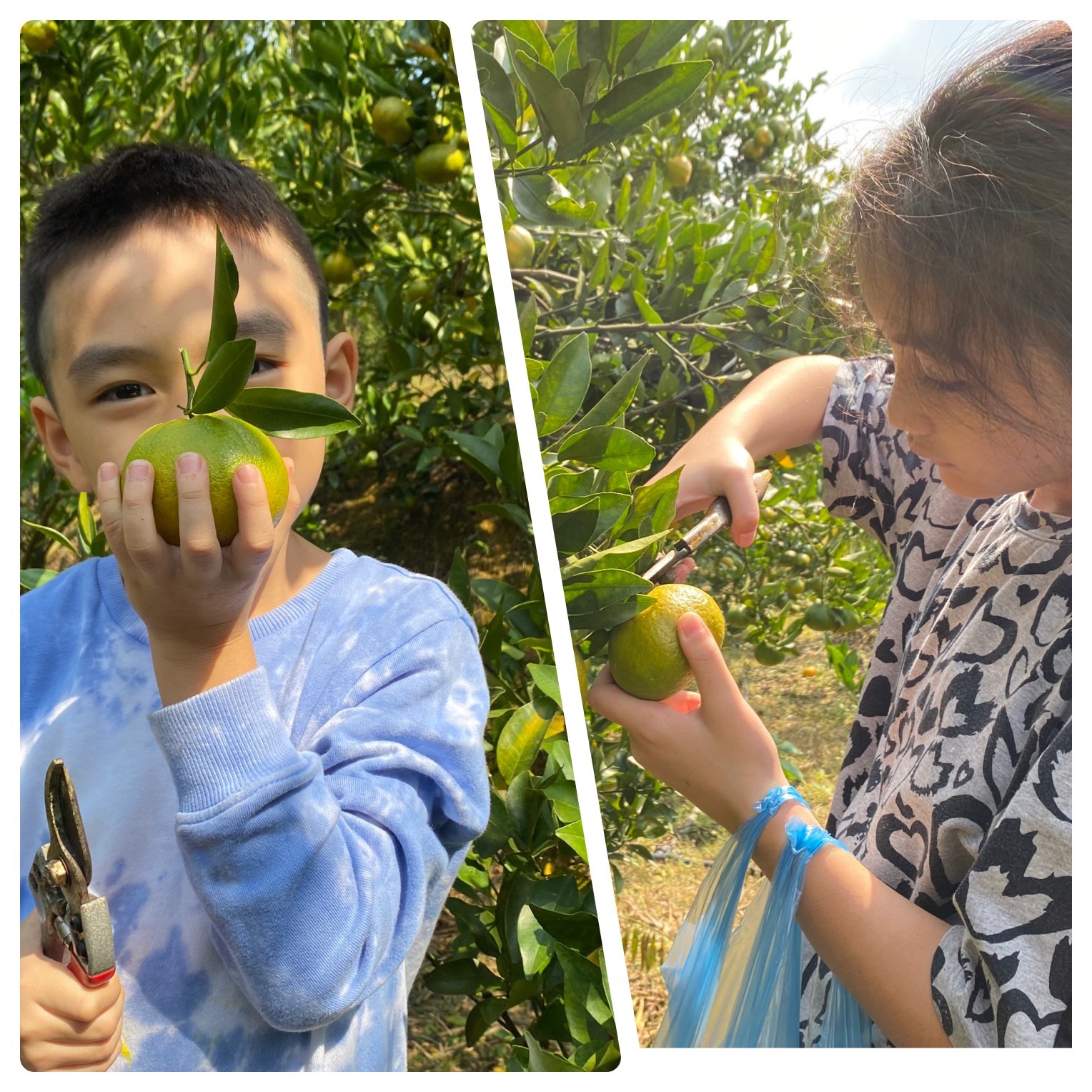 Các em bé thích thú khi được tận tay lựa chọn và hái những trái quýt thơm ngon.