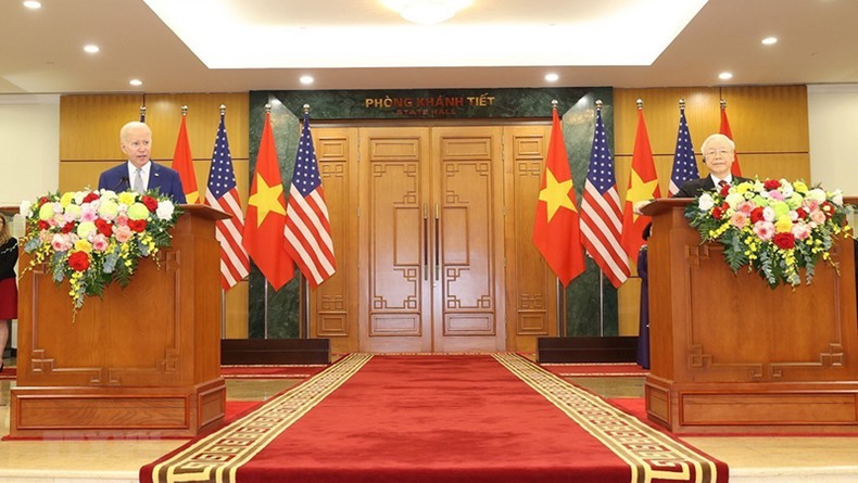 Ngày 10/9/2023, Tổng Bí thư Ban Chấp hành Trung ương Đảng Cộng sản Việt Nam Nguyễn Phú Trọng và Tổng thống Hoa Kỳ Joseph R. Biden Jr. đã gặp và hội đàm tại Hà Nội, Việt Nam. Hai nhà lãnh đạo hoan nghênh một giai đoạn lịch sử mới của tình hữu nghị và hợp tác song phương với việc nâng cấp quan hệ hai nước lên Đối tác chiến lược toàn diện vì hòa bình, hợp tác và phát triển bền vững. Hoa Kỳ ủng hộ một nước Việt Nam mạnh, độc lập, thịnh vượng và tự cường.