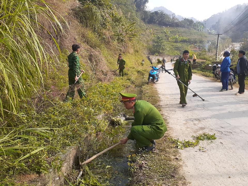 Lực lượng công an, bộ đội tuyên truyền, giúp đỡ Nhân dân huyện Si Ma Cai trong công tác đảm vệ sinh môi trường nông thôn.