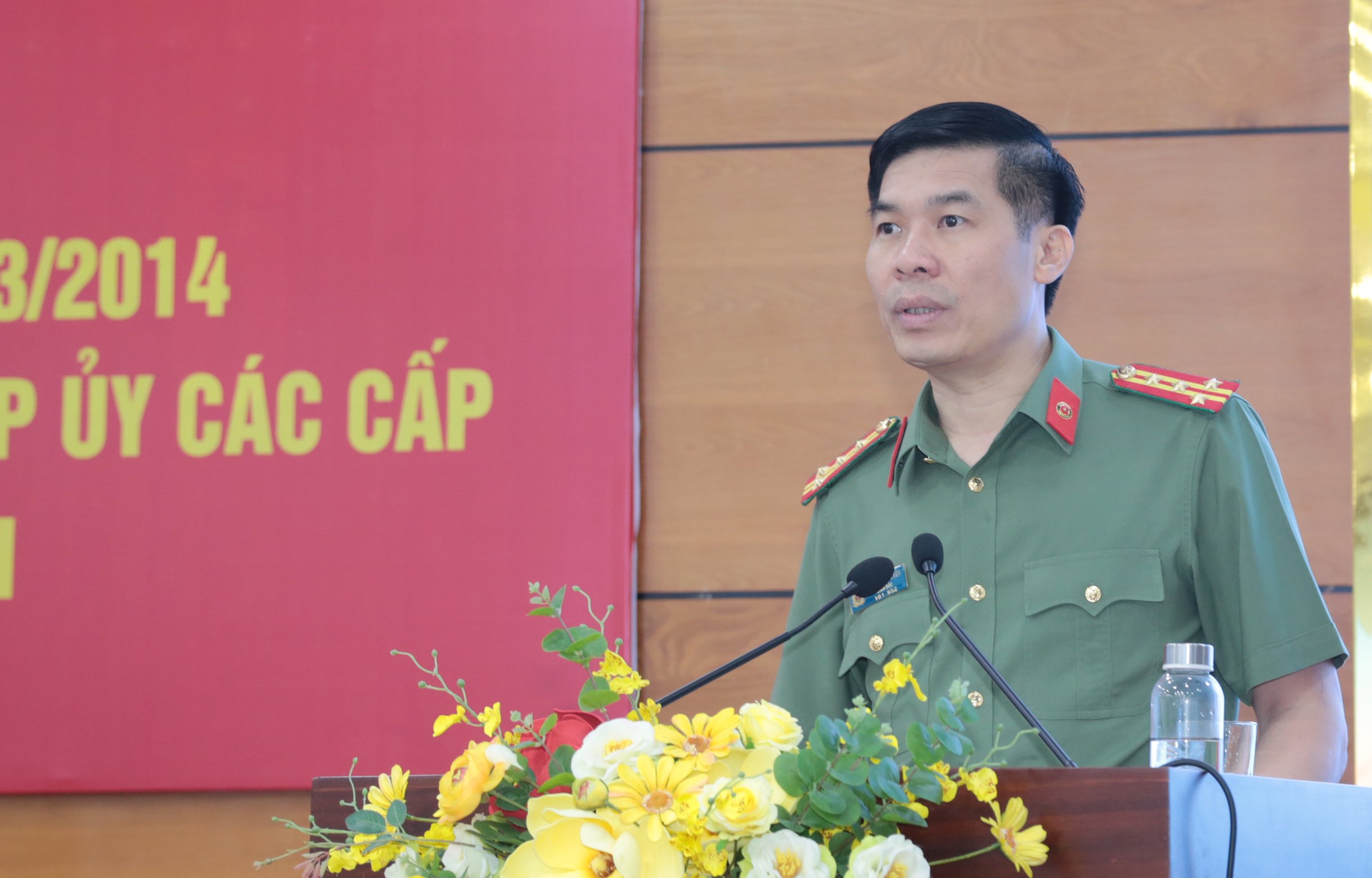 Lãnh đạo Công an tỉnh phát biểu tại hội nghị.