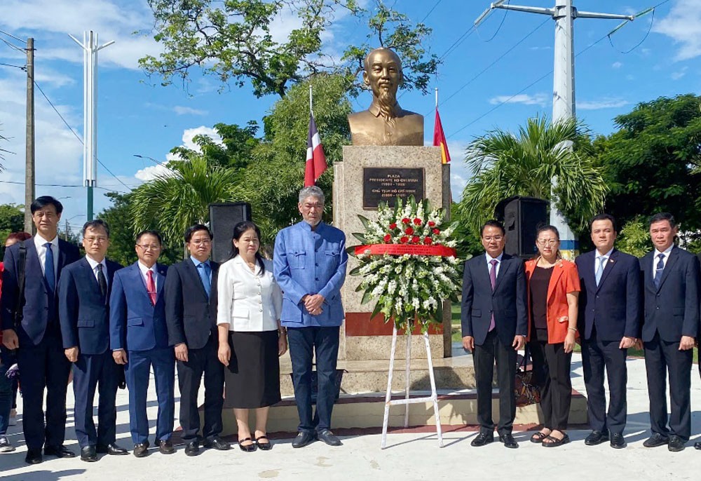 Đoàn đại biểu tỉnh Lào Cai và các lãnh đạo MIU dâng hoa tại Tượng Hồ Chí Minh tại Thủ đô Santo Domingo.