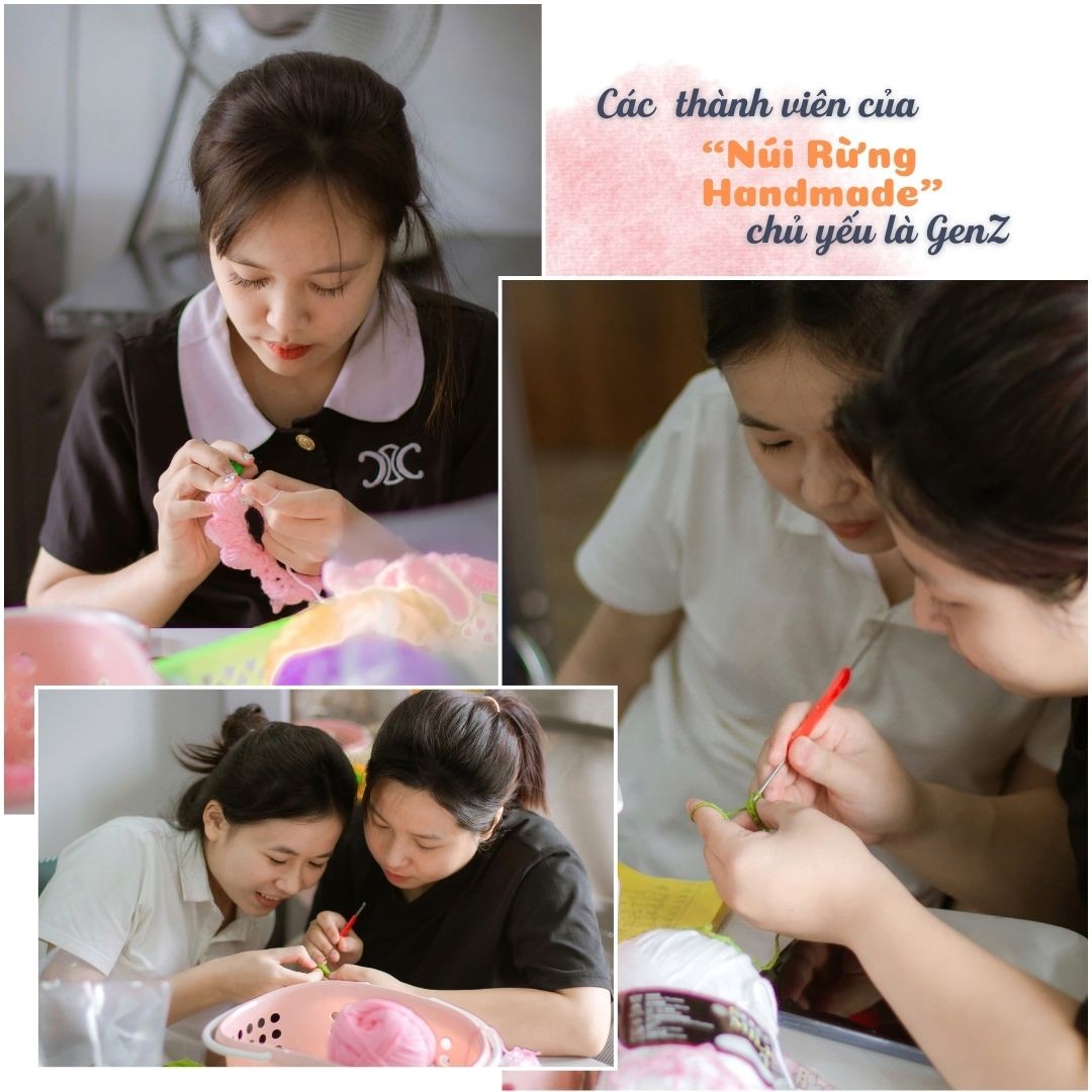 Trong ký ức của thế hệ 8X trở về trước, có lẽ hình ảnh các bà, các mẹ thoăn thoắt tay kim, tay sợi đan khăn, đan áo cho chồng đã không còn xa lạ, thế nhưng ở xưởng “Núi Rừng Handmade” chủ yếu lại là các bạn trẻ GenZ.