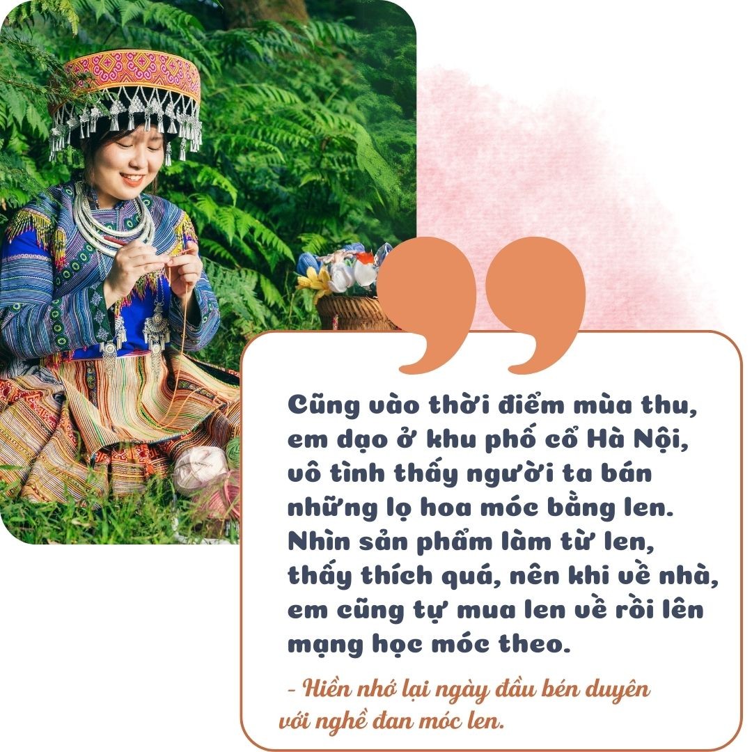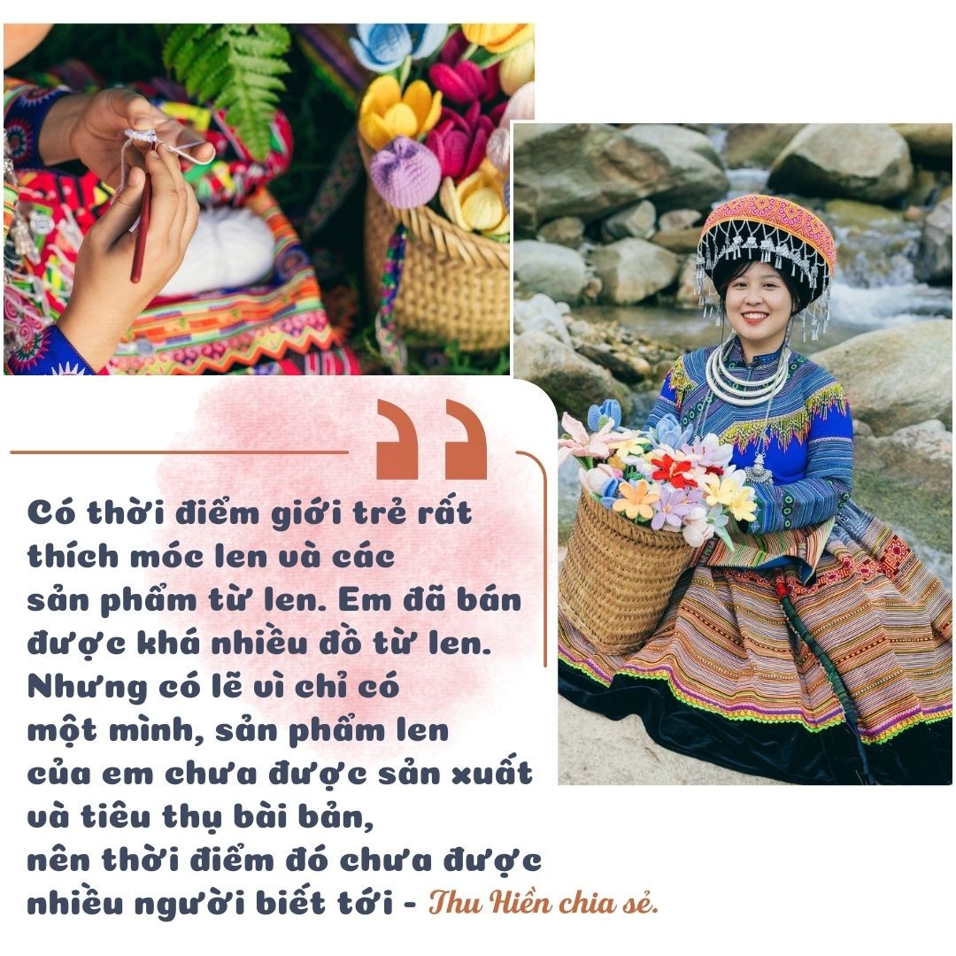 Một trong những người có “tay nghề” vững tại xưởng “Núi Rừng Handmade” là cô gái ngoài 20 tuổi - Nguyễn Thu Hiền, quê ở huyện Bảo Thắng, từng học du lịch tại Hà Nội. Tuy còn trẻ nhưng Hiền đã làm quen với len nhiều năm.