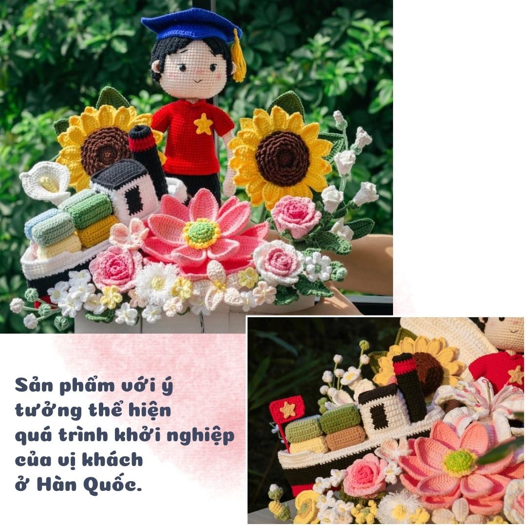 “Sản phẩm có rất nhiều chi tiết phức tạp, cứ móc xong một chi tiết, em lại gửi cho khách xem và cùng nhau chỉnh sửa. Sau khoảng 1 tháng sản phẩm hoàn thiện, gửi đến tay khách hàng ở Hàn Quốc, khách rất ưng ý và khen ngợi”- Thu Hiền chia sẻ.