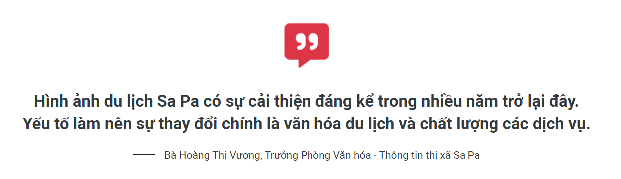 Theo bà Hoàng Thị Vượng, Trưởng Phòng Văn hóa - Thông tin thị xã Sa Pa, việc xây dựng điểm đến an toàn, thân thiện được địa phương thực hiện từ nhiều năm nay. Đặc biệt, sau giai đoạn bùng phát dịch bệnh Covid-19, thị xã càng đặt trọng tâm và coi đây là nhiệm vụ quan trọng hàng đầu để phát triển du lịch bền vững.
