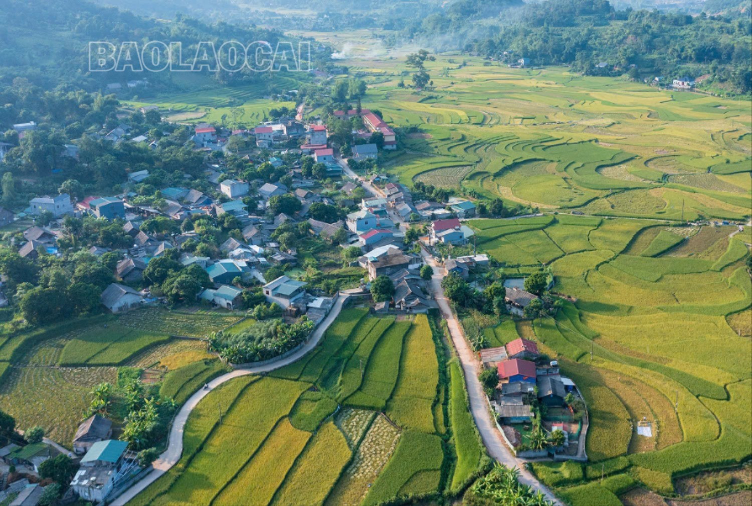 Hợp Thành là xã ngoại ô của thành thành phố Lào Cai, được biết đến là vùng đất có cảnh sắc sơn thủy hữu tình. Nhìn từ trên cao, khung cảnh miền quê hiện ra đẹp như tranh vẽ.