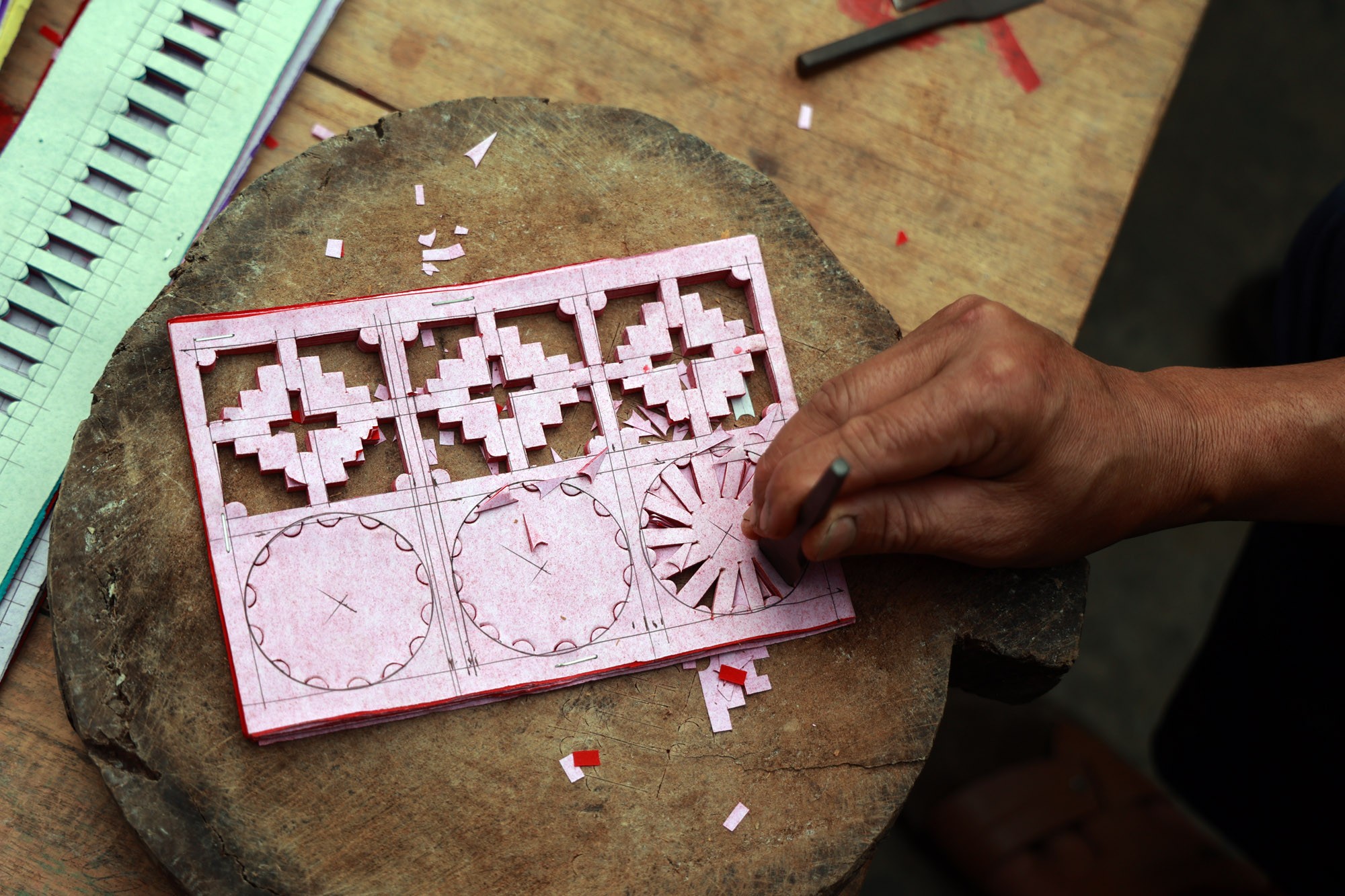 Một người thợ làm tranh cắt giấy lành nghề phải nắm được những kỹ năng vẽ mẫu, đục họa tiết, làm khung, dán tranh cùng những nghi lễ truyền thống.