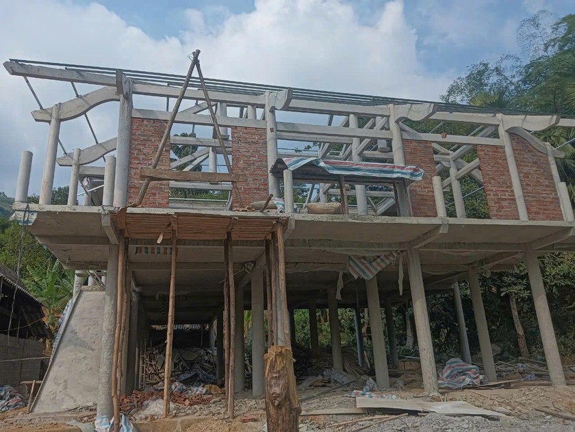 Hộ ông Nguyễn Xuân Phòng, thôn hùng 2, xã Xuân Giao, con liệt sĩ, được hỗ trợ làm mới.