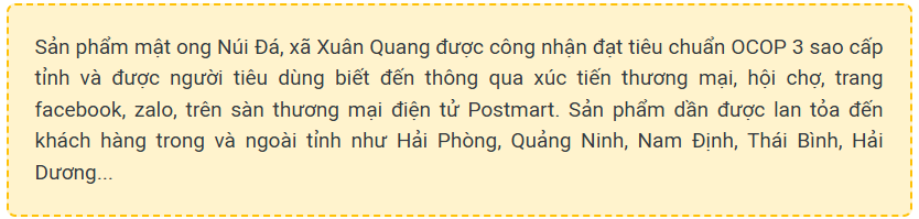 Với việc xây dựng thành công thương hiệu mật ong Núi Đá, anh Cao Xuân Chiến đã tạo việc làm mới, vừa mang lại lợi ích kinh tế cho các hộ gia đình, vừa phát triển thương hiệu hàng hóa đặc trưng của địa phương, góp phần giúp người dân giảm nghèo, vươn lên làm giàu và thúc đẩy kinh tế nông nghiệp của địa phương phát triển bền vững.