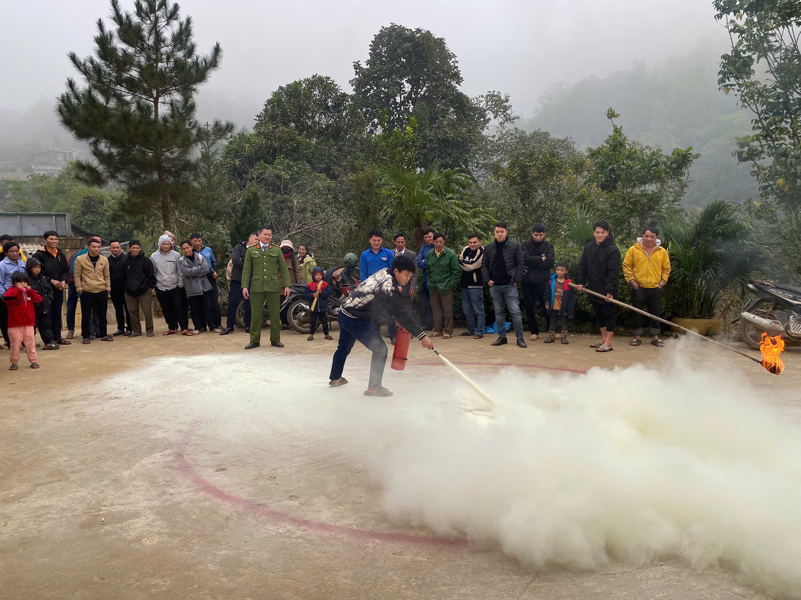 Hướng dẫn người dân thực hành chữa cháy.