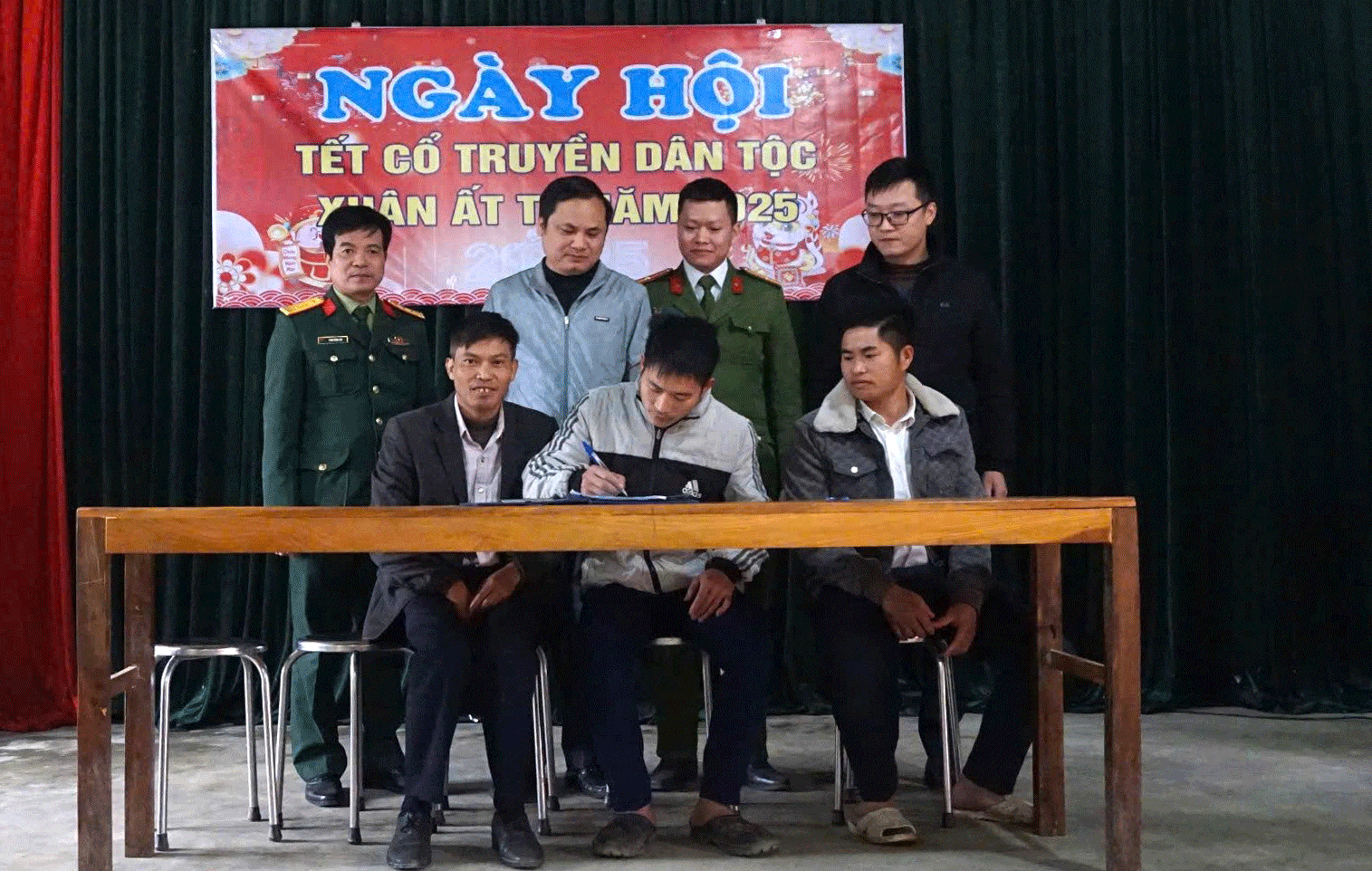 Trong không khí sum vầy của Ngày hội tết cổ truyền, mọi người cùng chúc nhau những lời tốt đẹp, năm 2025 cùng phấn đấu vượt qua khó khăn để xây dựng thôn xóm, làng bản ngày càng ấm no, hạnh phúc.