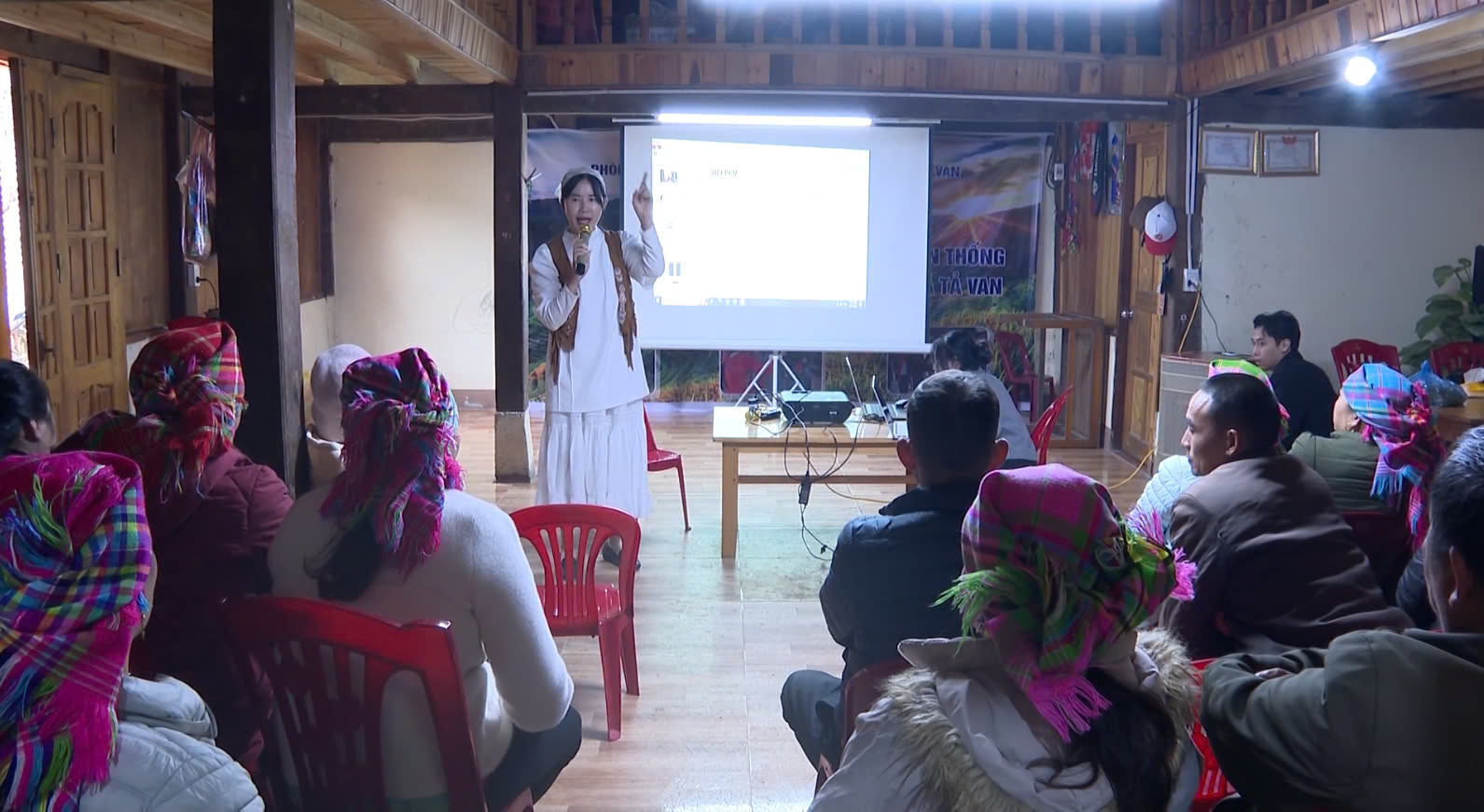 Một buổi tập huấn hướng dẫn người dân kinh doanh sản phẩm du lịch và Homstay trên nền tảng số tại xã Tả Van, thị xã Sa Pa.
