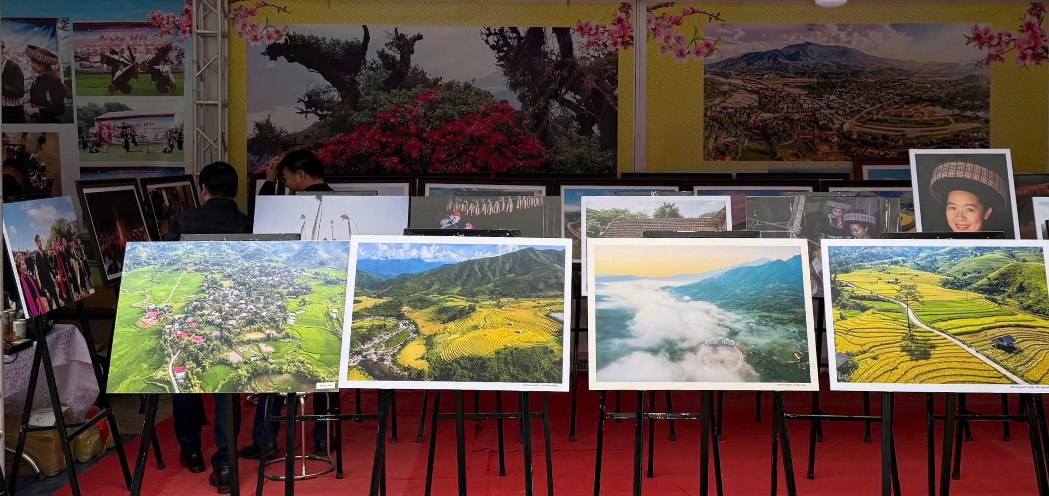 Bên cạnh không gian trưng bày ảnh, triển lãm còn kết hợp giới thiệu các sản phẩm truyền thống của huyện như thổ cẩm, nông sản, dược liệu và các mặt hàng thủ công đặc trưng.