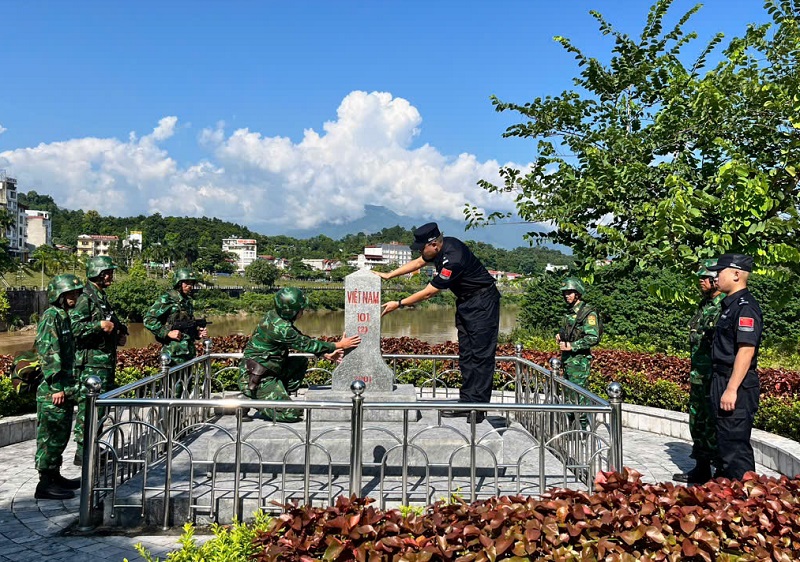 Đội tuần tra liên hợp số 1 Bộ đội Biên phòng tỉnh lào Cai tiến hành kiểm tra cột Mốc 101.