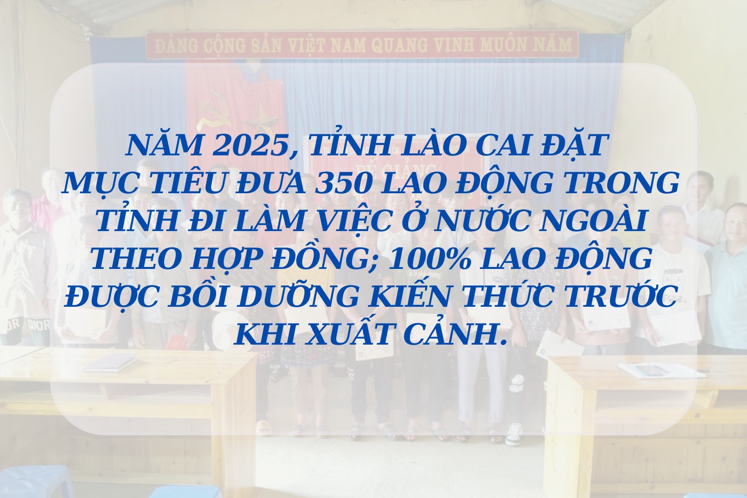 Năm 2024, toàn tỉnh có 250 lao động đã xuất cảnh đi làm việc ở nước ngoài theo hợp đồng; trong đó 4 huyện nghèo (Bắc Hà, Bát Xát, Si Ma Cai, Mường Khương) có số lao động đi làm việc ở nước ngoài chiếm 43,2%.
