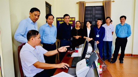 Lãnh đạo tỉnh, lãnh đạo huyện thăm mô hình chuyển đổi số thông minh tại thôn Đông Căm, xã Gia Phú, Bảo Thắng.