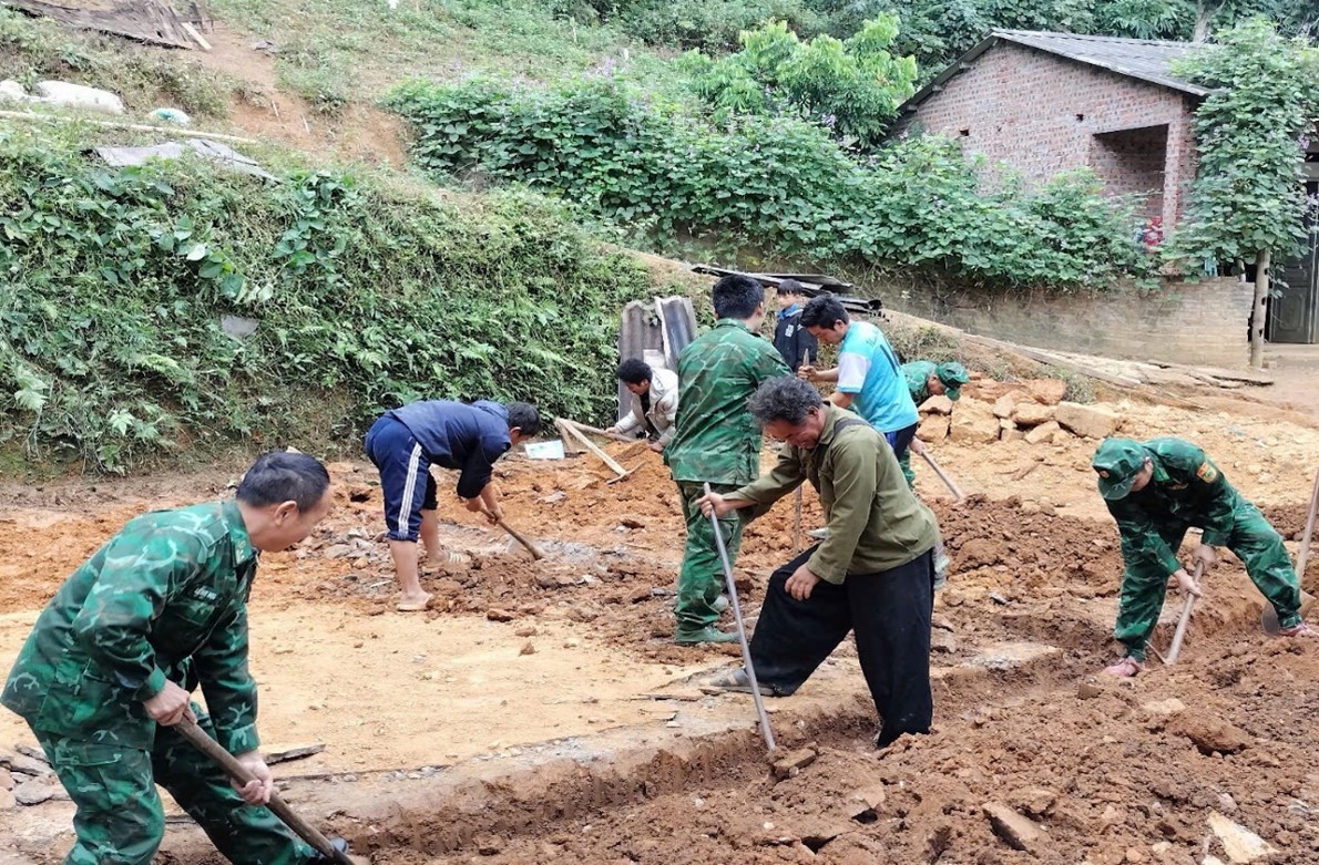 Cán bộ, chiến sĩ Đồn Biên phòng Trịnh Tường giúp dân xóa nhà tạm.