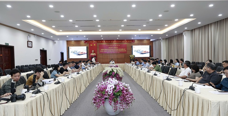 Quang cảnh buổi họp báo công bố thông tin Dự án đầu tư xây dựng tuyến đường sắt Lào Cai - Hà Nội - Hải Phòng.