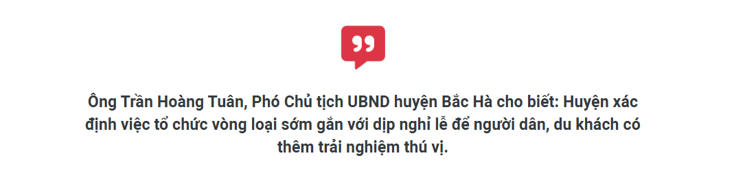 Năm nay, huyện Bắc Hà tổ chức vòng loại Lễ hội đua ngựa truyền thống sớm hơn mọi năm khoảng 1 tháng, đúng vào thời điểm kỳ nghỉ lễ. Gần 100 nài ngựa tham gia với các lượt đua đầy kịch tính, thu hút đông du khách đến sân vận động theo dõi là tín hiệu tích cực để địa phương tiếp tục đưa ra nhiều sản phẩm độc đáo trong mùa du lịch hè năm nay.