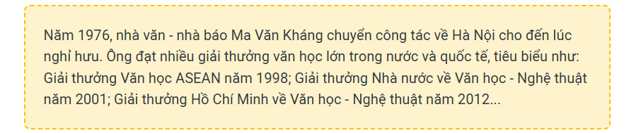 Quả vậy, ở ông, những năm tháng làm báo được đi nhiều, tích lũy tư liệu phong phú, sau khoảng lùi nhất định, khi gặp gỡ tâm hồn văn chương đã hòa quyện, nảy mầm thành những cánh đồng văn chương. Và những ai đã từng đọc đều không thể không yêu mến tác giả Ma Văn Kháng với "Đồng bạc trắng hoa xòe", "Vùng biên ải", "Bên bờ suối Vạch", "Thành phố miền biên", "Gặp gỡ ở La Pan Tẩn"… Đây đều là những tiểu thuyết, truyện ngắn được ông lấy bối cảnh ở Lào Cai để sáng tác.