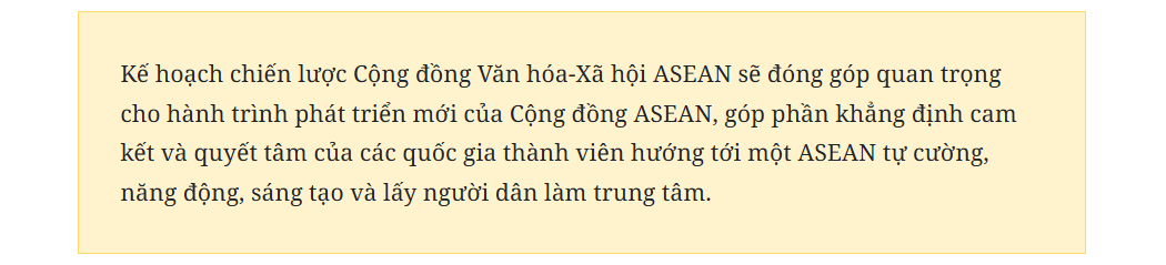 Theo Thứ trưởng Vũ Chiến Thắng, Kế hoạch chiến lược Cộng đồng Văn hóa-Xã hội ASEAN sẽ đóng góp quan trọng cho hành trình phát triển mới của Cộng đồng ASEAN, góp phần khẳng định cam kết và quyết tâm của các quốc gia thành viên hướng tới một ASEAN tự cường, năng động, sáng tạo và lấy người dân làm trung tâm.