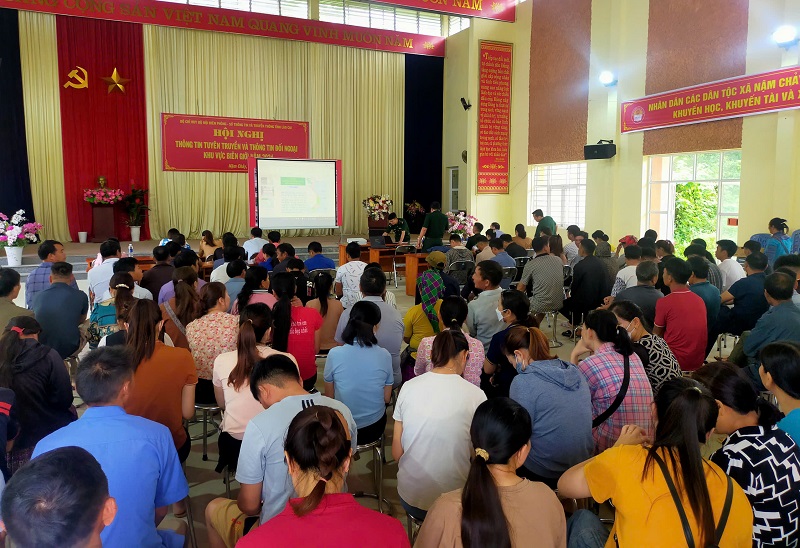 Các lực lượng chức năng tuyên truyền bảo vệ biên giới và phòng chống lừa đảo trực tuyến cho nhân dân xã biên giới tỉnh Lào Cai.
