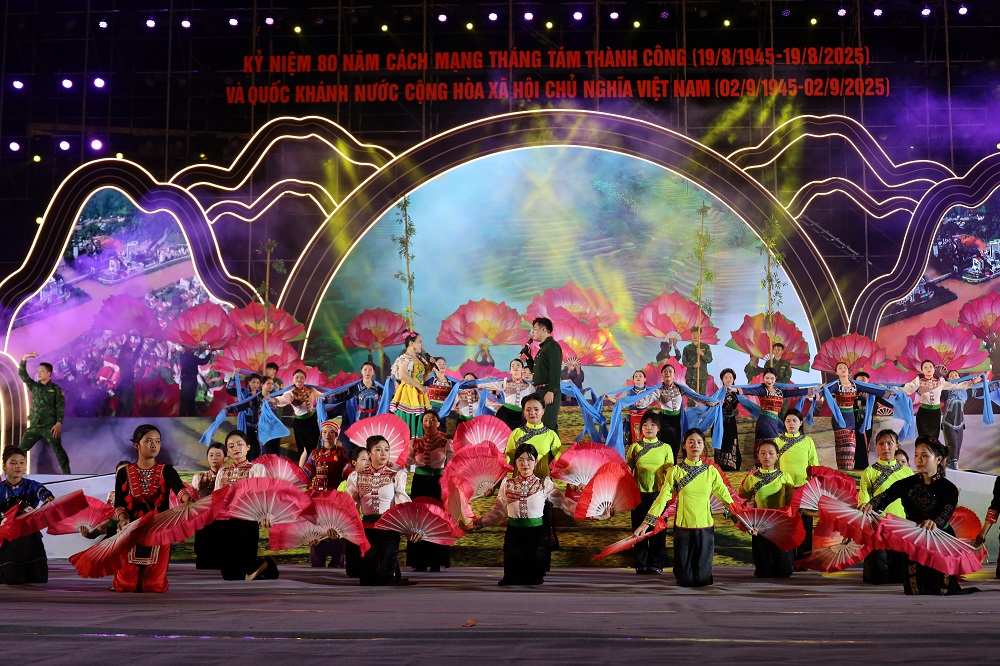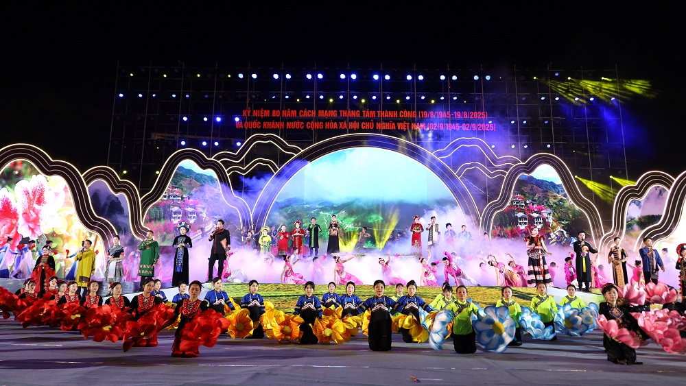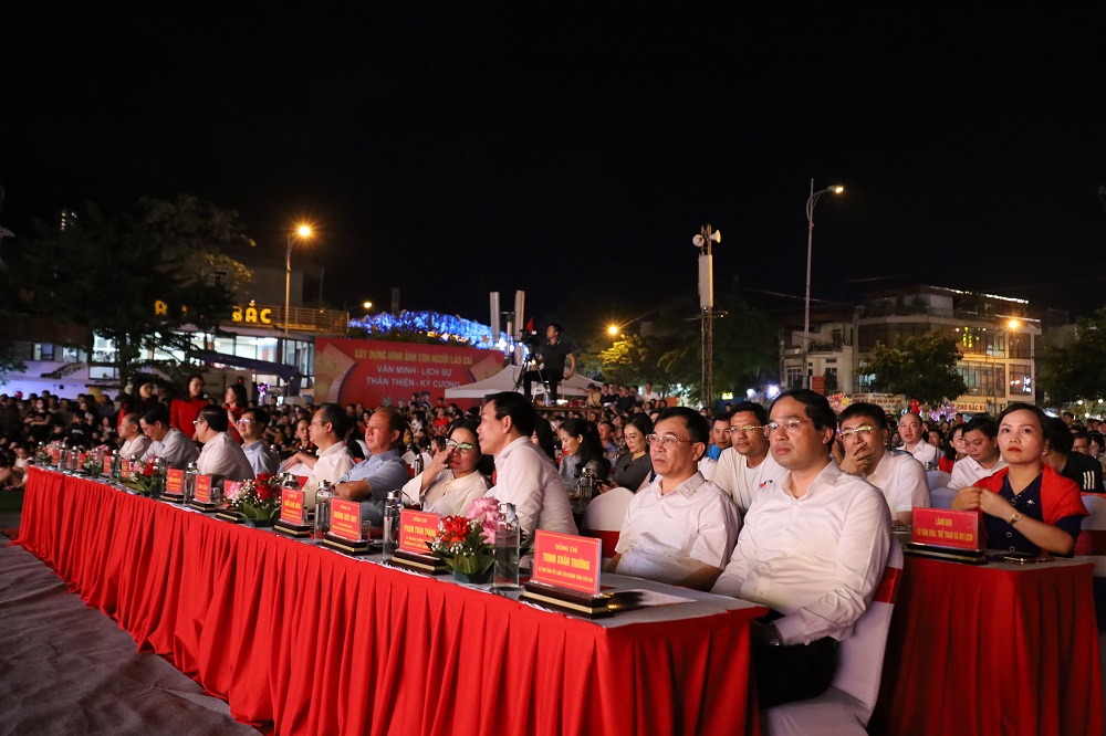 Tối 2/9, tại Quảng trường Đinh Lễ (phường Lào Cai), tỉnh Lào Cai đã long trọng tổ chức Chương trình nghệ thuật chào mừng kỷ niệm 80 năm Quốc khánh nước Cộng hòa xã hội chủ nghĩa Việt Nam (2/9/1945 – 2/9/2025) với chủ đề “80 năm vang mãi bản hùng ca”.Dự chương trình có các đồng chí: Trịnh Xuân Trường - Bí thư Tỉnh ủy, Chủ tịch HĐND tỉnh; Giàng Thị Dung - Phó Bí thư Tỉnh ủy, Chủ tịch Ủy ban MTTQ Việt Nam tỉnh; cùng các đồng chí trong Ban Thường vụ Tỉnh ủy, Thường trực HĐND, UBND, Ủy ban MTTQ Việt Nam tỉnh; lãnh đạo Đoàn ĐBQH tỉnh; các đồng chí Ủy viên BCH Đảng bộ tỉnh; đại diện các cơ quan, đơn vị, doanh nghiệp và đông đảo cán bộ, đảng viên, Nhân dân, du khách.
