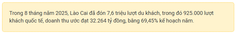 Để tiếp tục bứt phá, tỉnh xác định 5 dòng sản phẩm chủ lực: du lịch sinh thái - nghỉ dưỡng, du lịch cộng đồng - văn hóa, du lịch lễ hội - sự kiện, du lịch mạo hiểm và du lịch tâm linh. Song song, chiến lược quảng bá cũng đổi mới mạnh mẽ, ứng dụng công nghệ số, mạng xã hội, livestream, hợp tác với KOL, kết hợp cùng lễ hội, sự kiện thể thao để tạo hiệu ứng lan tỏa. Tất cả những nỗ lực này đều hướng tới một mục tiêu: phát triển du lịch Lào Cai bền vững, hiện đại nhưng vẫn đậm đà bản sắc, khẳng định vị thế trên bản đồ du lịch quốc gia và quốc tế.