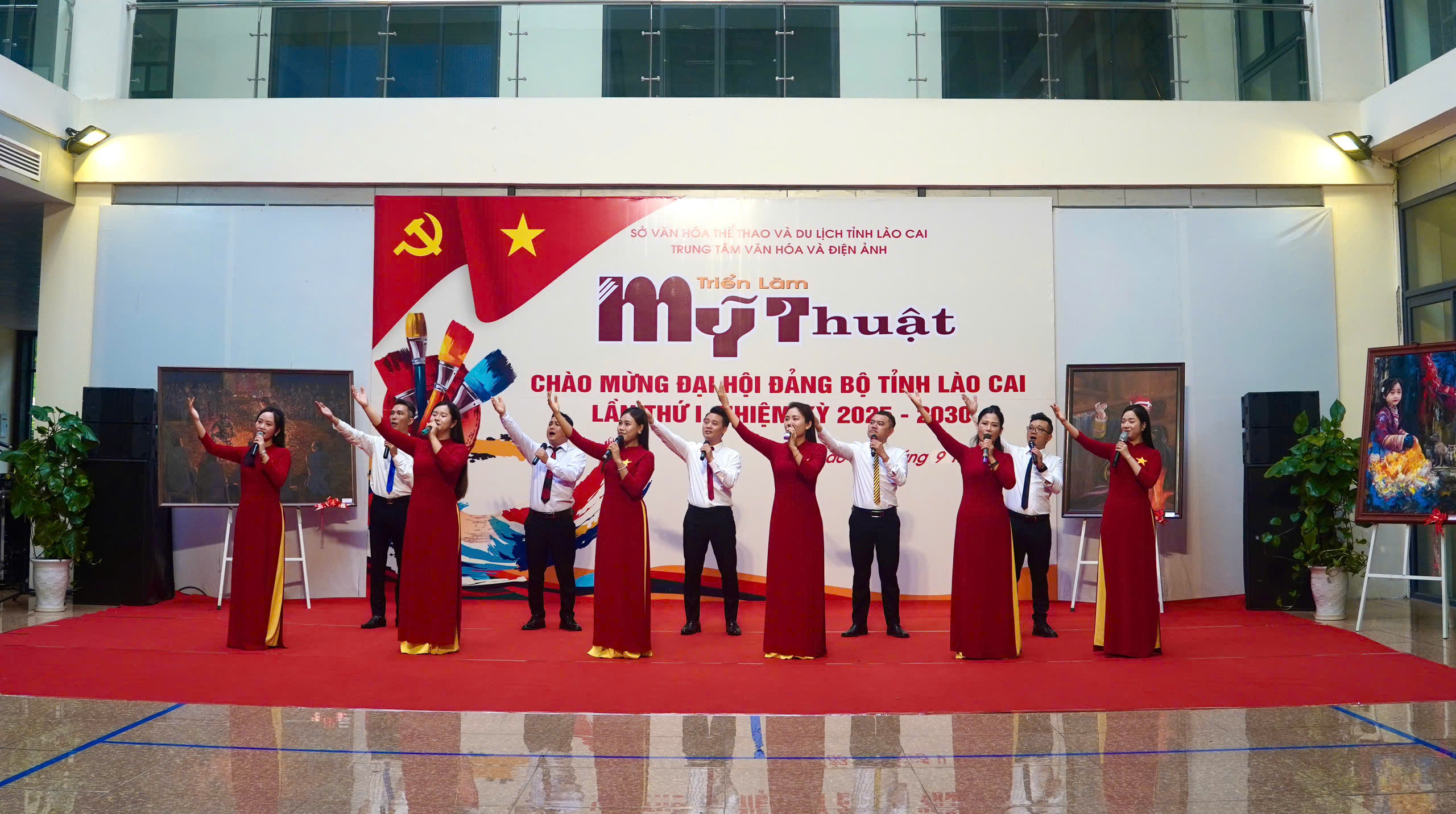 Văn nghệ chào mừng do các nghệ sỹ, diễn viên Trung tâm Văn hoá và Điện ảnh tỉnh Lào Cai thể hiện.