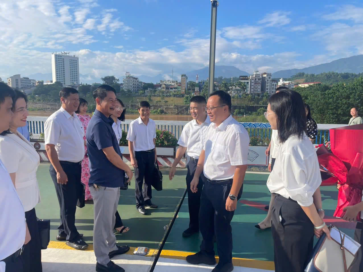Đoàn đại biểu châu Hồng Hà đón đoàn đại biểu tỉnh Lào Cai tại cửa khẩu quốc tế Lào Cai - Khà Khẩu.
