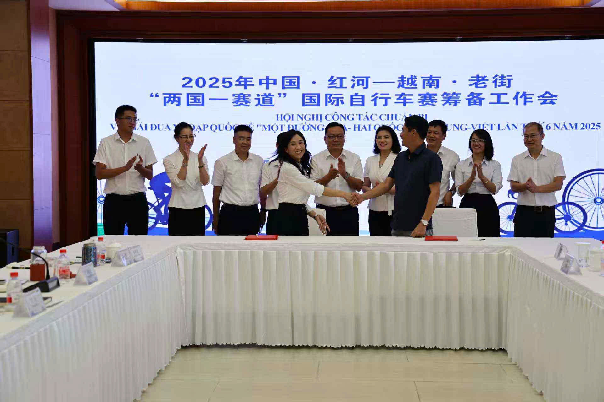 Nhận lời mời của Cục Giáo dục Thể thao Châu Hồng Hà, tỉnh Vân Nam, Trung Quốc, sáng ngày 24/9, đoàn đại biểu của tỉnh Lào Cai (Việt Nam) do ông Nguyễn Thái Hòa – Phó Giám đốc Sở Văn hóa, Thể thao và Du lịch tỉnh Lào Cai đã sang Hà Khẩu (Trung Quốc) tiến hành hội đàm với Cục Giáo dục Thể thao Châu Hồng Hà do ông Đinh Hàng, Cục trưởng Cục Giáo dục và Thể thao châu Hồng Hà chuẩn bị cho công tác tổ chức giải Đua xe đạp quốc tế “Một đường đua hai quốc gia” Hồng Hà (Trung Quốc) – Lào Cai (Việt Nam) lần thứ VI năm 2025.