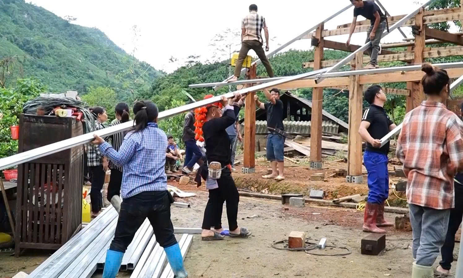 Người dân tích cực hỗ trợ, giúp đỡ nhau trong cải tạo, sửa chữa cũng như xây nhà mới.