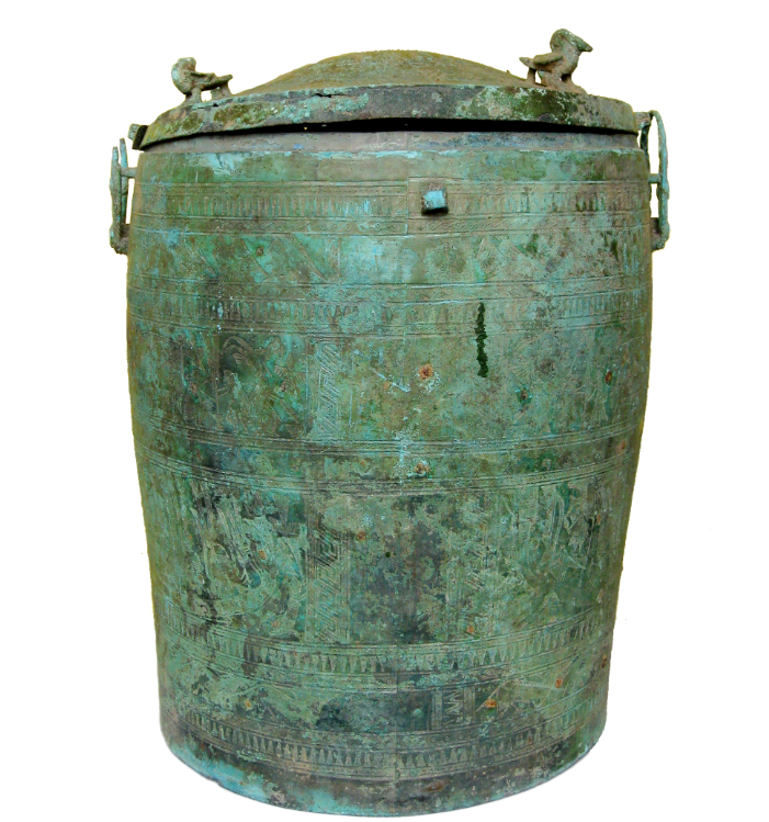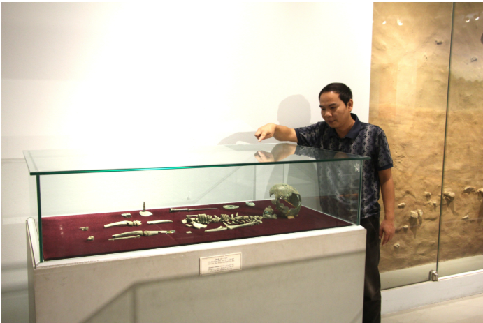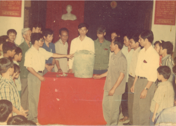 Kể lại bằng tất cả sự xúc động, tự hào, Tiến sĩ sử học Nguyễn Văn Quang - Chủ tịch Hội Khoa học Lịch sử tỉnh Lào Cai, nguyên giám đốc Bảo tàng tỉnh Yên Bái cho biết: Năm 1995, khi còn là Giám đốc Bảo tàng tỉnh, tôi nghe tin dân quân xã Hợp Minh (nay là phường Âu Lâu) trong lúc đào công sự phòng thủ tại đồi Chọi đã phát hiện một vật kim loại lạ. Không ngờ đó lại là cổ vật có niên đại hàng nghìn năm. Do không nhận biết được giá trị, họ thấy có xương người bên trong nên đào một hố khác bên cạnh để chôn lại. Khi chính quyền xã nắm được thông tin, hiện vật được chuyển về bảo quản tạm thời. Thời điểm ấy, việc đi lại rất khó khăn, lo ngại di vật có thể bị hư hại, tôi đã tự bỏ tiền túi, bắt xe ôm đến tận nơi để kịp thời kiểm tra và tiếp nhận hiện vật.