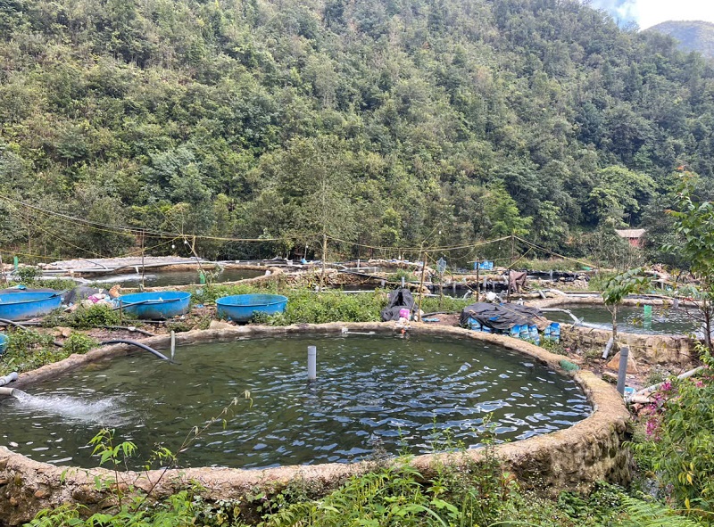 Những ao nuôi cá hồi, cá tầm của A Thống tại Séo Mý Tỷ.