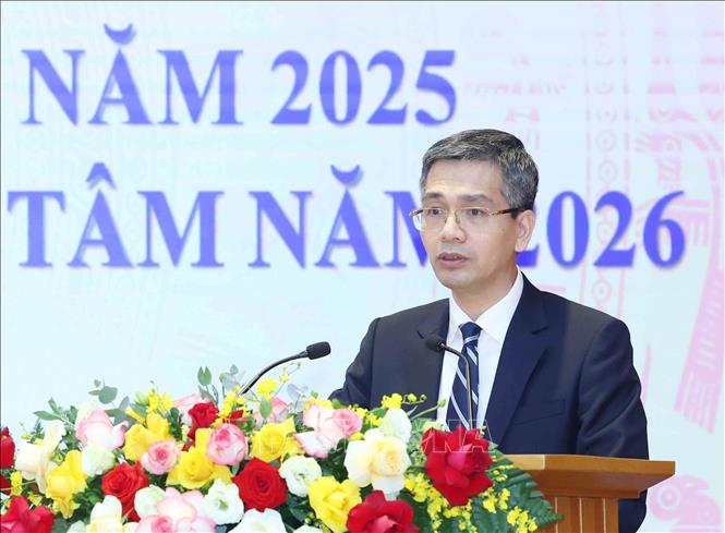 Sáng 29/12, Ban Chỉ đạo Chuyển đổi số trong các cơ quan Đảng (Ban Chỉ đạo) tổ chức Hội nghị tổng kết công tác chuyển đổi số trong các cơ quan Đảng năm 2025 và nhiệm vụ, giải pháp trọng tâm năm 2026.Quang cảnh Hội nghị - Ảnh: TTXVN