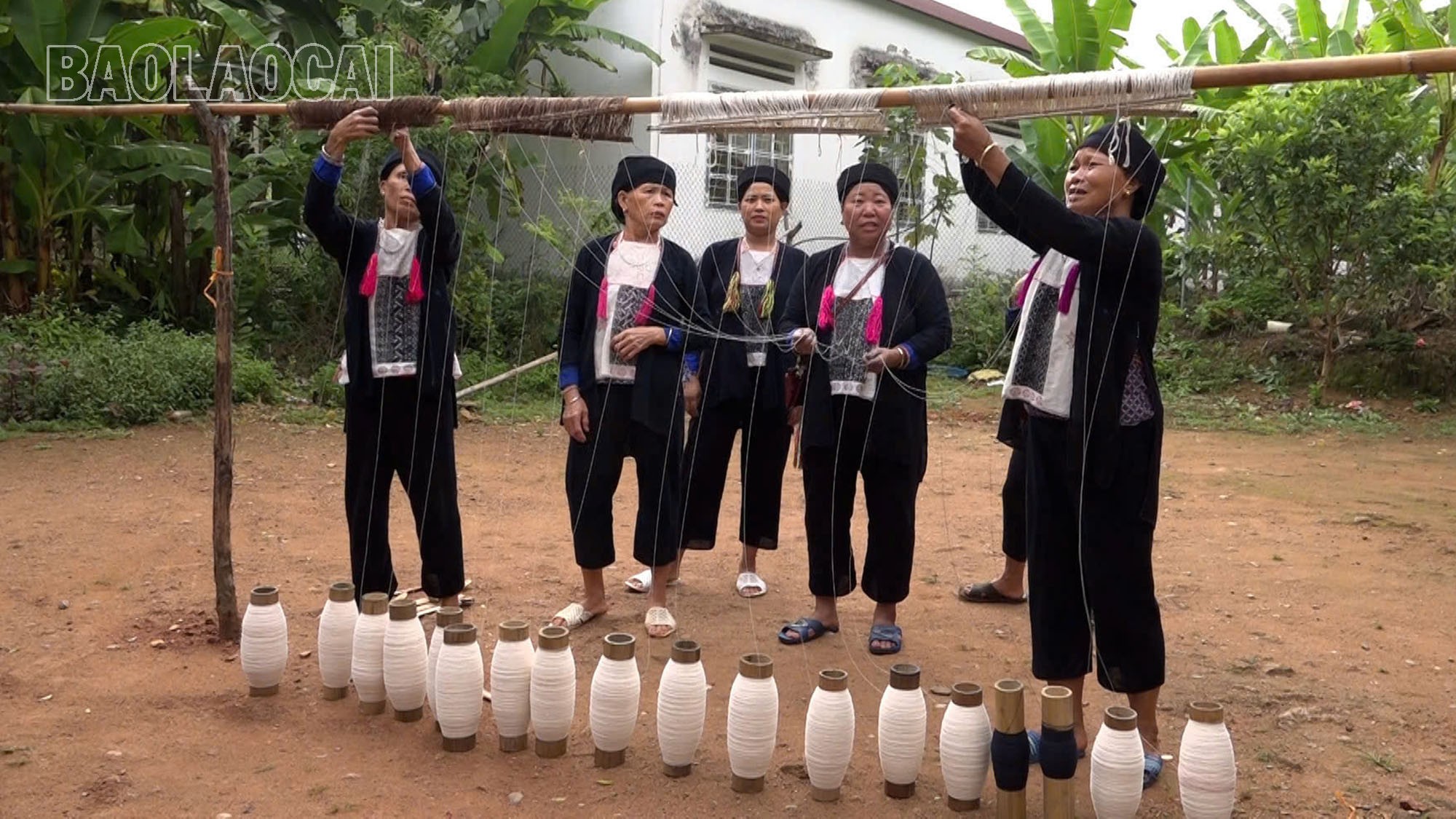 Đi dọc thôn, dễ bắt gặp hình ảnh những cô gái Dao Tuyển ngồi bên hiên nhà, kiên nhẫn từng đường kim mũi chỉ. Với họ, may trang phục không chỉ là kỹ năng mà còn là niềm tự hào.
