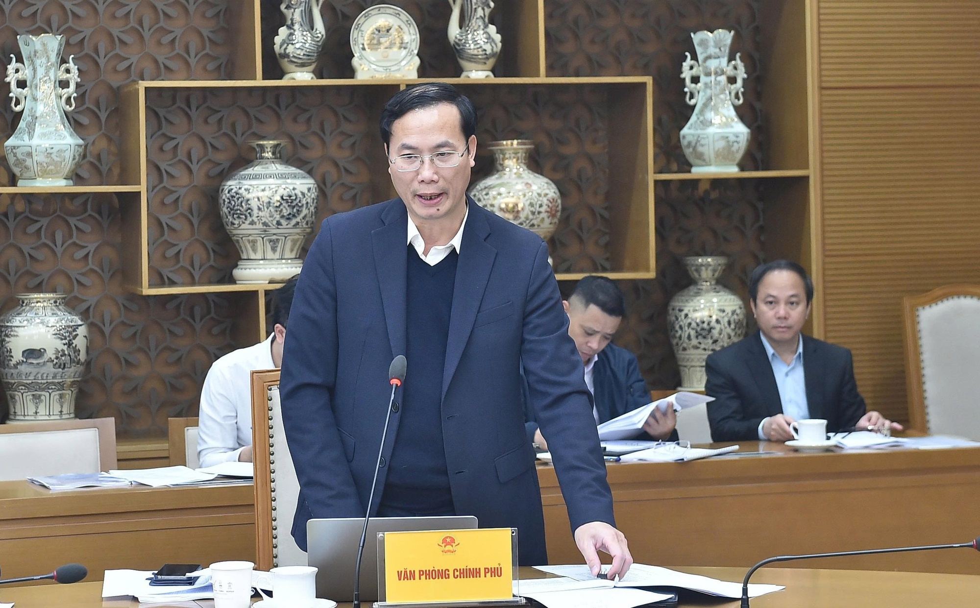 Thứ trưởng Bộ Văn hóa, Thể thao và Du lịch Hồ An Phong báo cáo tại phiên họp - Ảnh: VGP/Giang Thanh