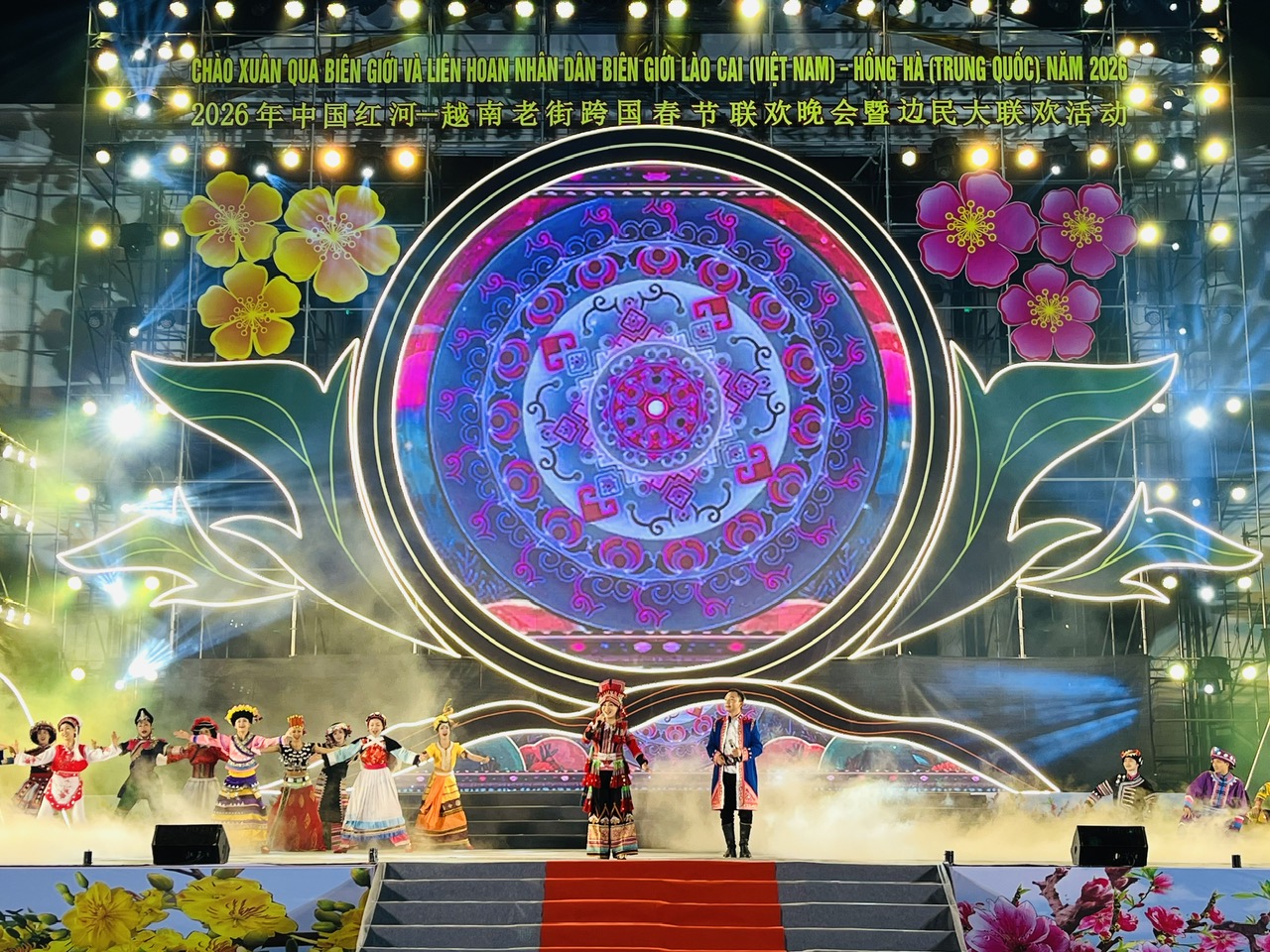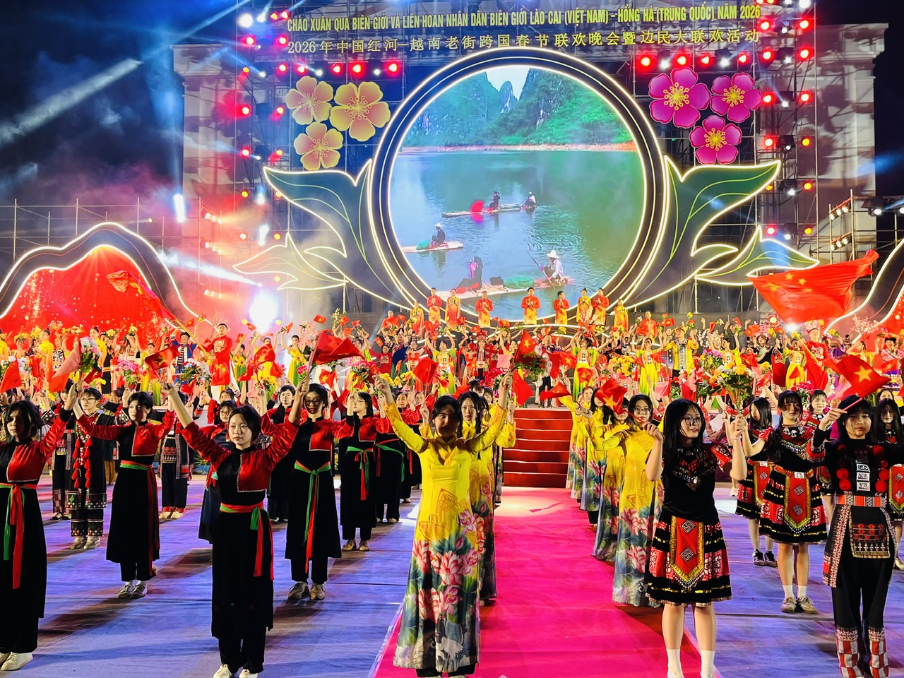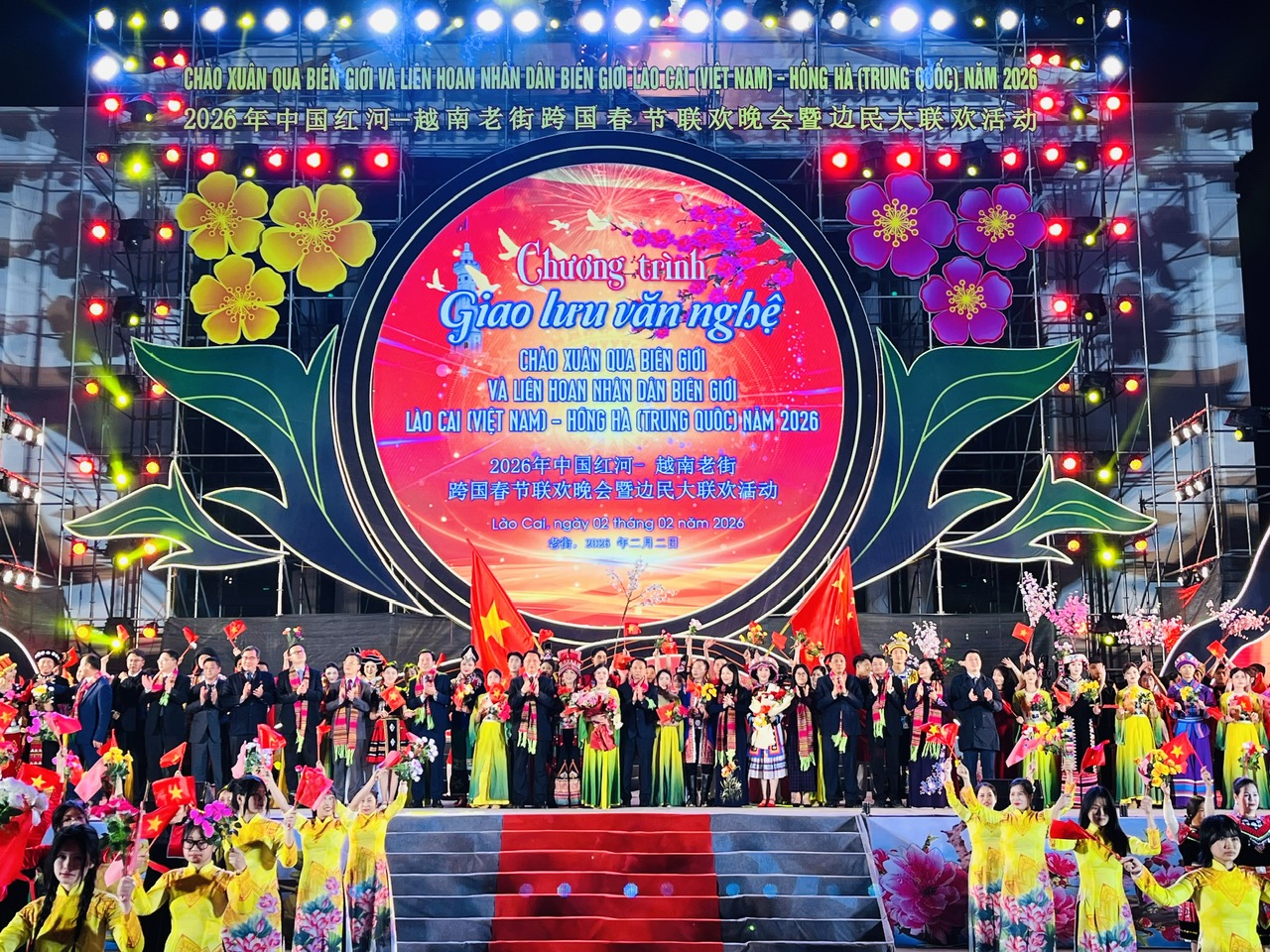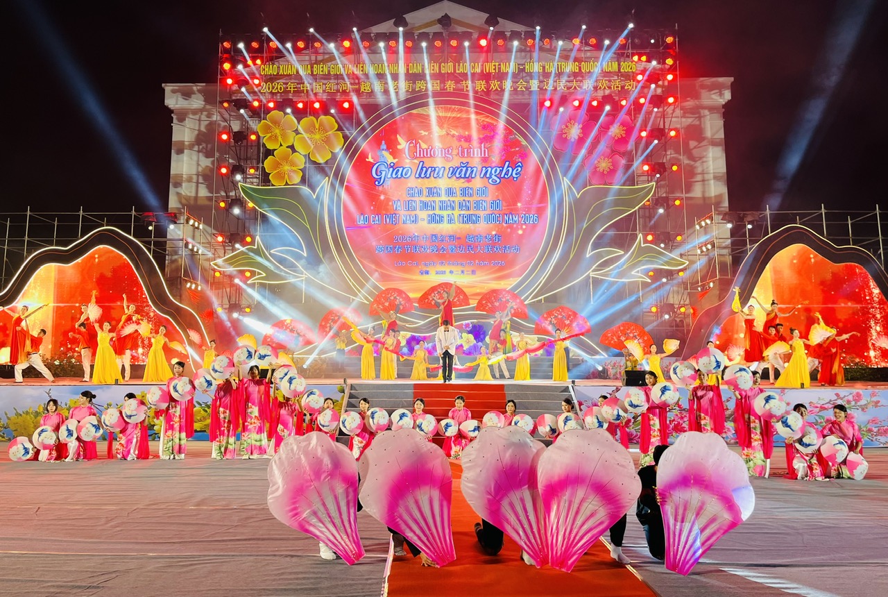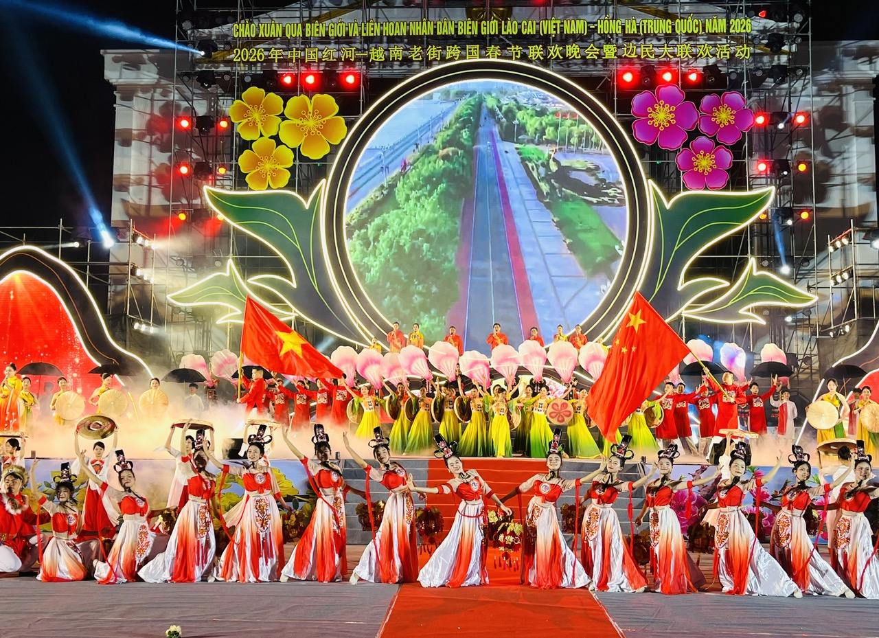 Trong không khí của những ngày đầu xuân mới, tối 2/2, tại Quảng trường Kim Tân, phường Lào Cai, Ủy ban nhân dân tỉnh Lào Cai (Việt Nam) và Chính quyền nhân dân Châu Hồng Hà (Trung Quốc) đã phối hợp tổ chức chương trình Giao lưu văn nghệ chào Xuân qua biên giới và Liên hoan Nhân dân biên giới Lào Cai (Việt Nam) – Hồng Hà (Trung Quốc) năm 2026.