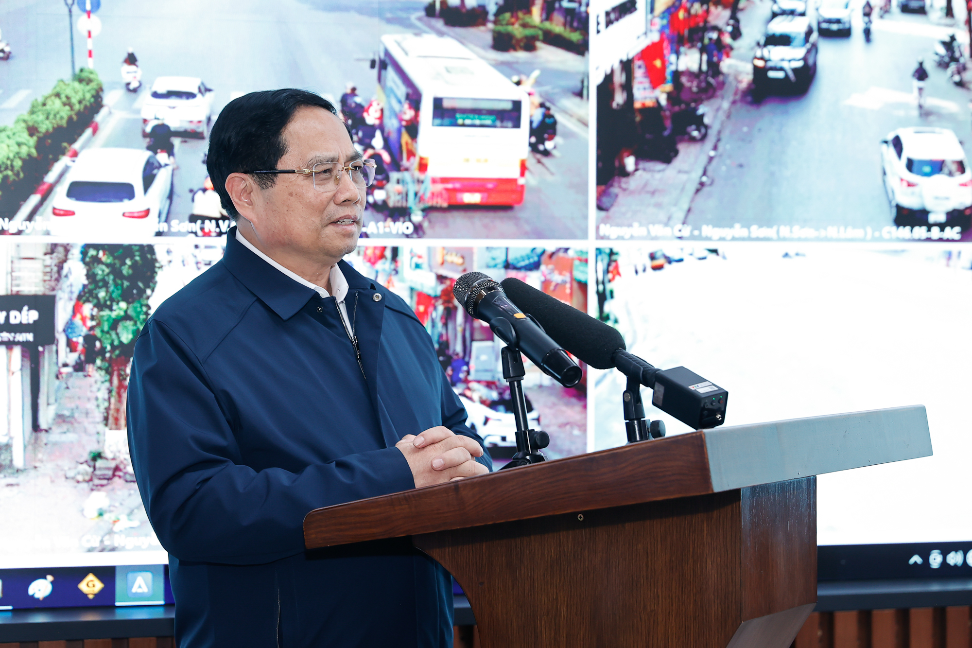 Thủ tướng Phạm Minh Chính chúc Tết và giao nhiệm vụ cho lực lượng cảnh sát giao thông - Ảnh: VGP/Nhật Bắc