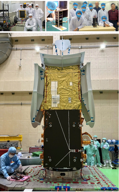 Các nhà khoa học của Viện Hàn lâm Khoa học và Công nghệ Việt Nam nghiên cứu mô hình vệ tinh của Việt Nam.