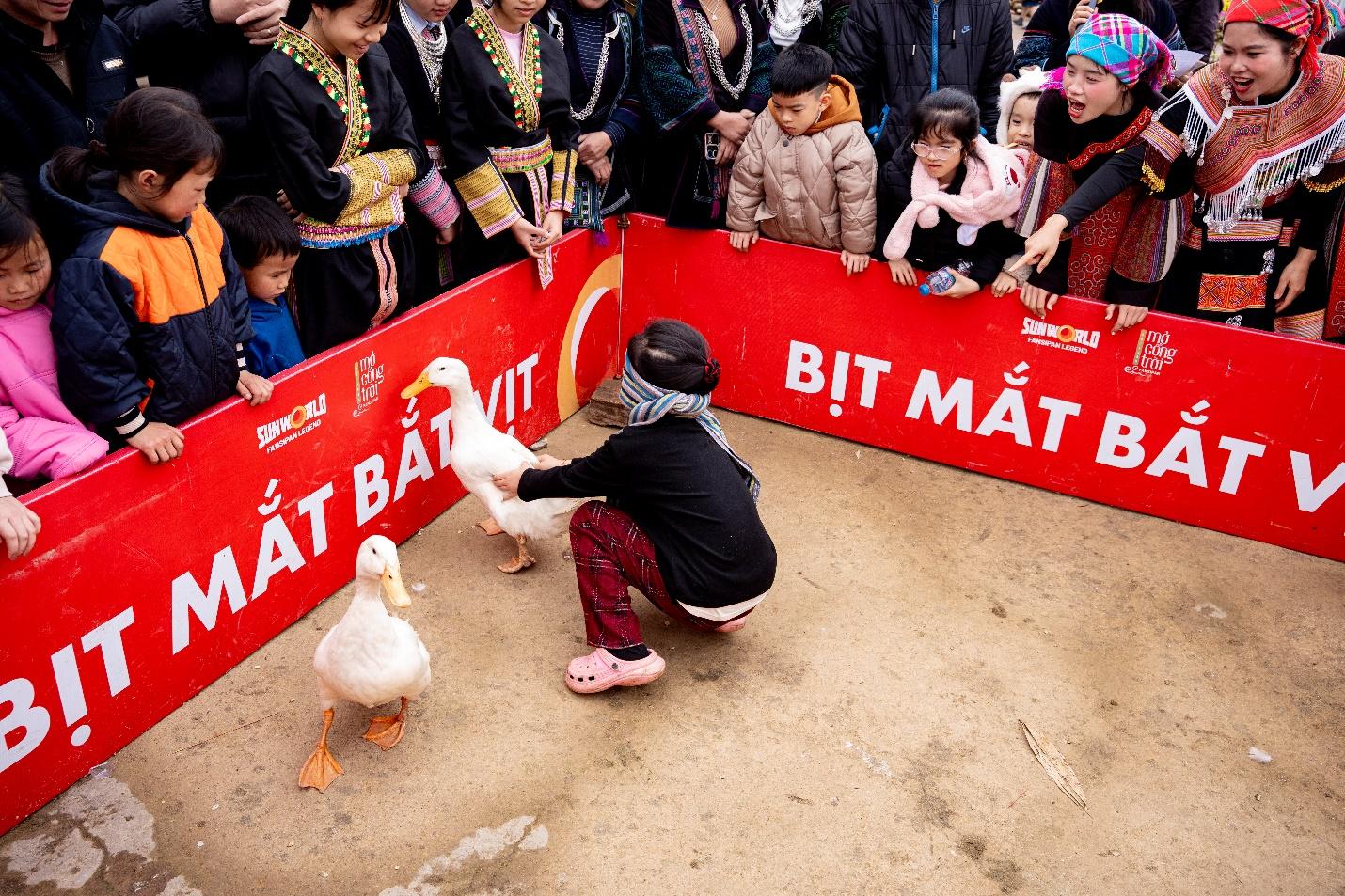 Sức hút của phần hội còn nằm ở những trò chơi dân gian như bịt mắt bắt vịt, bịt mắt bắt dê, đi cà kheo, leo cột mỡ, giúp du khách có những giây phút thư giãn sảng khoái giữa thiên nhiên hùng vĩ.