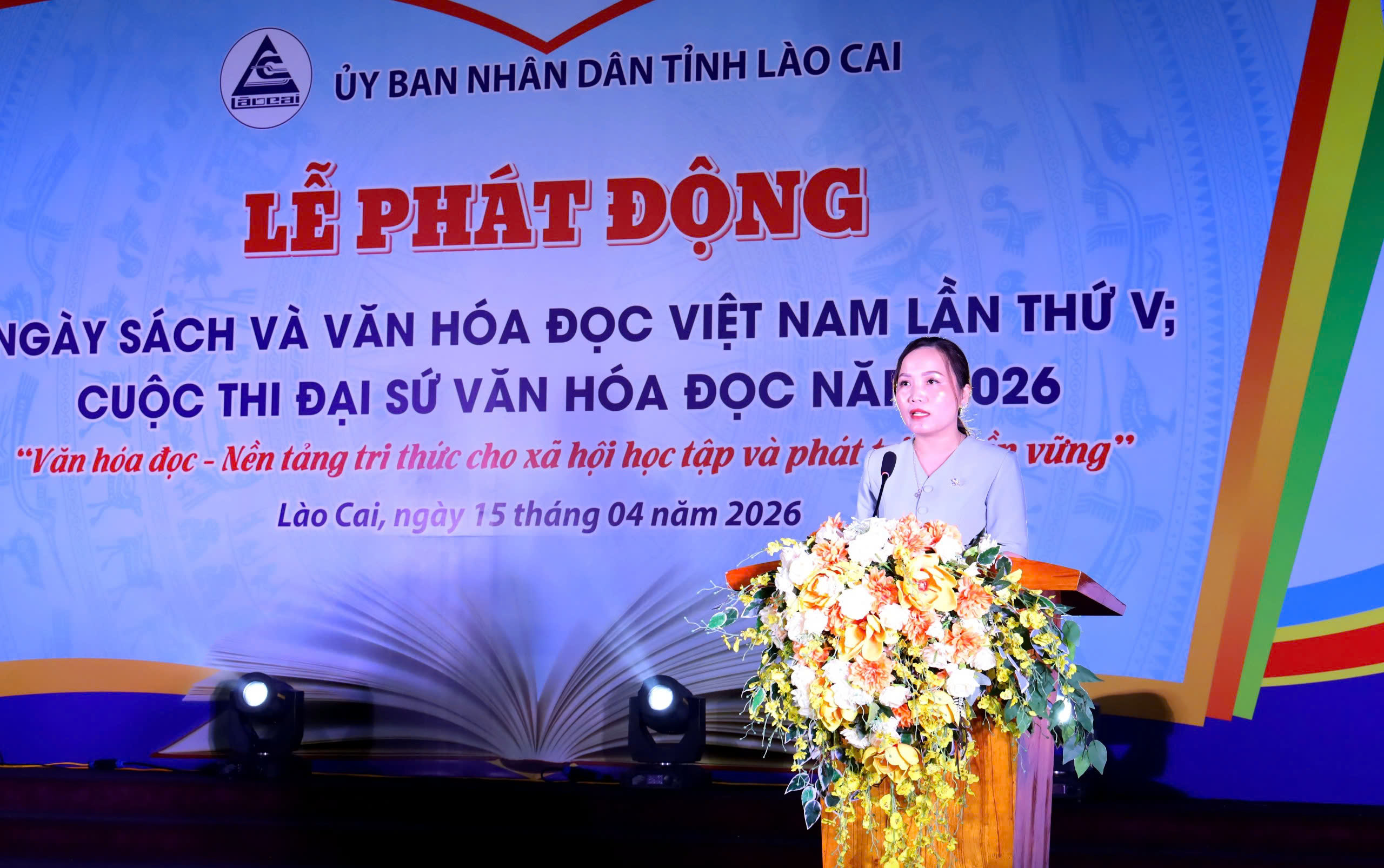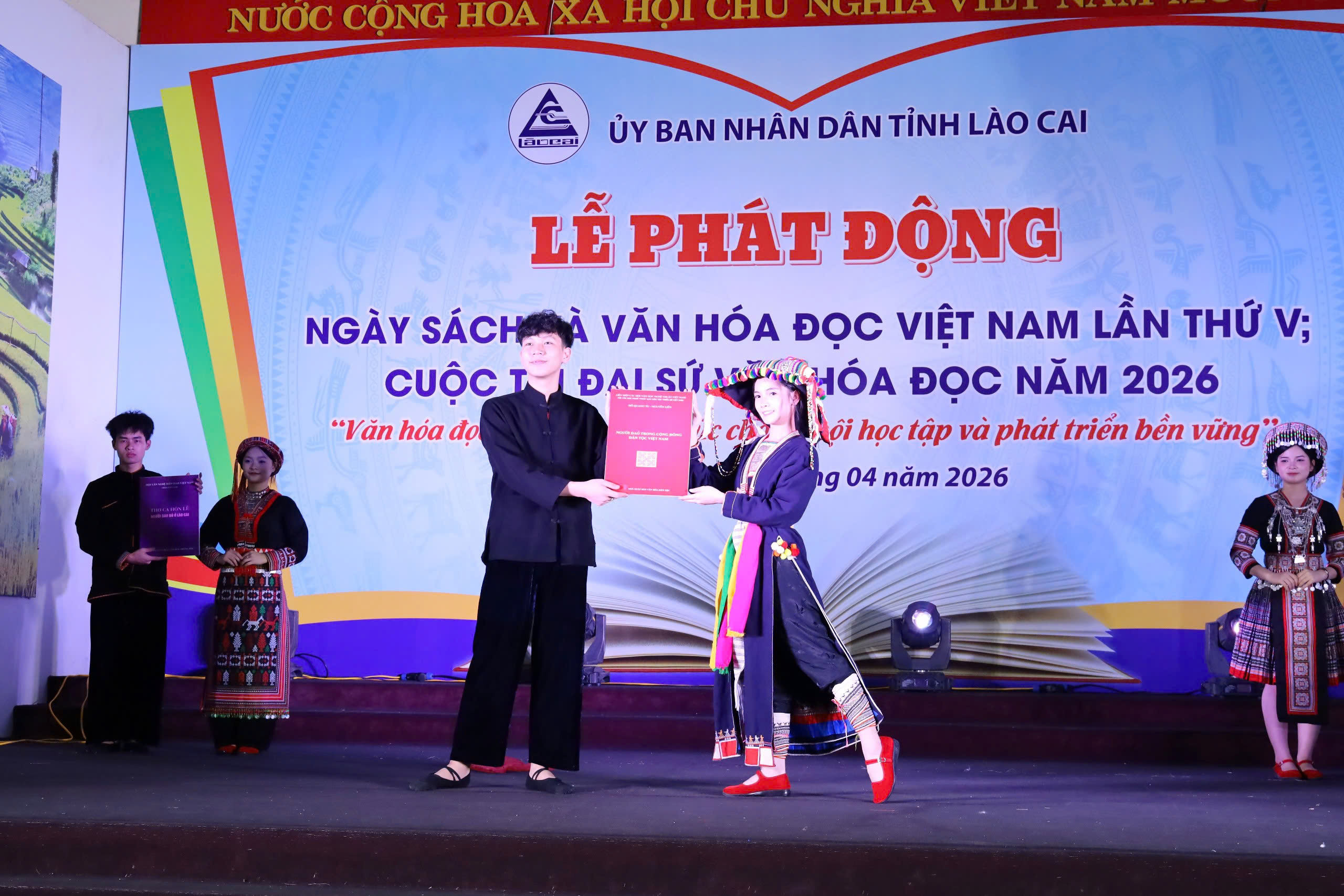 Sáng 15/4, tại Trường Phổ thông Dân tộc nội trú THPT Yên Bái, tỉnh Lào Cai long trọng tổ chức Lễ phát động “Ngày Sách và Văn hóa đọc Việt Nam lần thứ V năm 2026” và Cuộc thi Đại sứ Văn hóa đọc tỉnh Lào Cai năm 2026.Sự kiện nằm trong chuỗi hoạt động hưởng ứng Ngày Sách và Văn hóa đọc Việt Nam năm 2026 đang diễn ra trên cả nước có ý nghĩa đặc biệt quan trọng, không chỉ nâng cao dân trí mà còn góp phần gìn giữ, phát huy bản sắc văn hóa truyền thống đối với tỉnh Lào Cai - Nơi hội tụ nhiều giá trị văn hóa đặc sắc của các dân tộc.