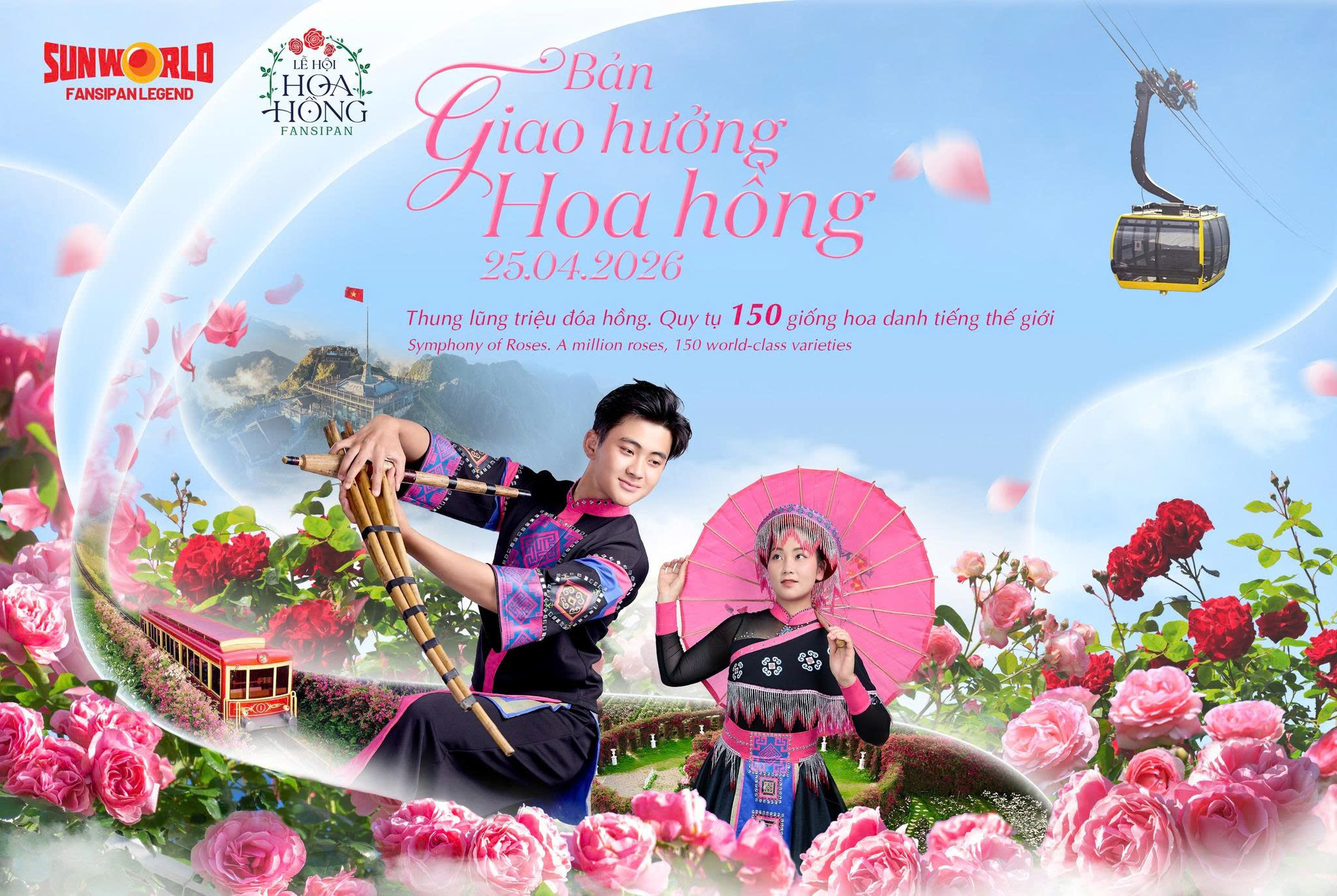 Poster giới thiệu Lễ hội Hoa hồng Fansipan do Sun World Fansipan Legend tổ chức, với chủ đề “Bản giao hưởng Hoa hồng”.